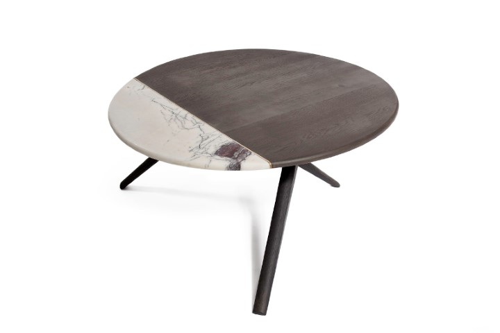 In EQUILIBRA, marble and wood are connected through brass, resulting in a sculptural, harmonious object, ready to dominate the room like a wise man.