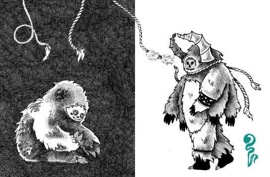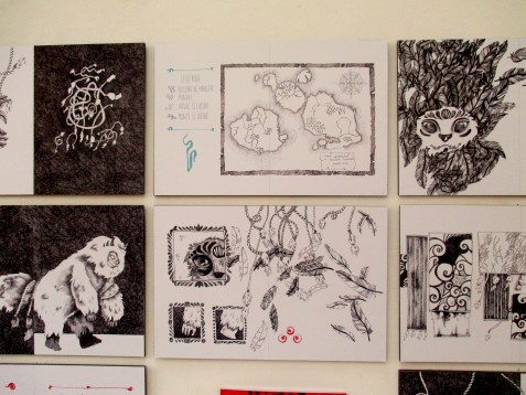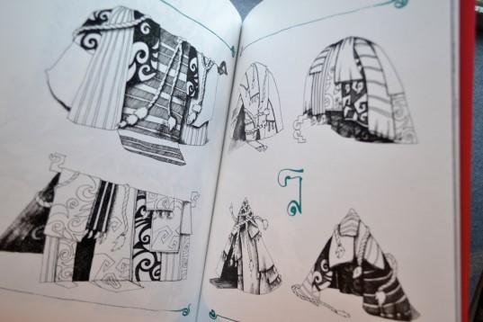 Ca tehnică a folosit linerul negru, iar semnele ce împodobesc paginile și scrisul sunt realizate în pensulă cu tuș. Așadar, semnele sunt la fel de spontane pe cât par, sunt gesturi mai mult sau mai puțin controlate cu pensula. Aceste semne sunt singurele pete de culoare din carte.