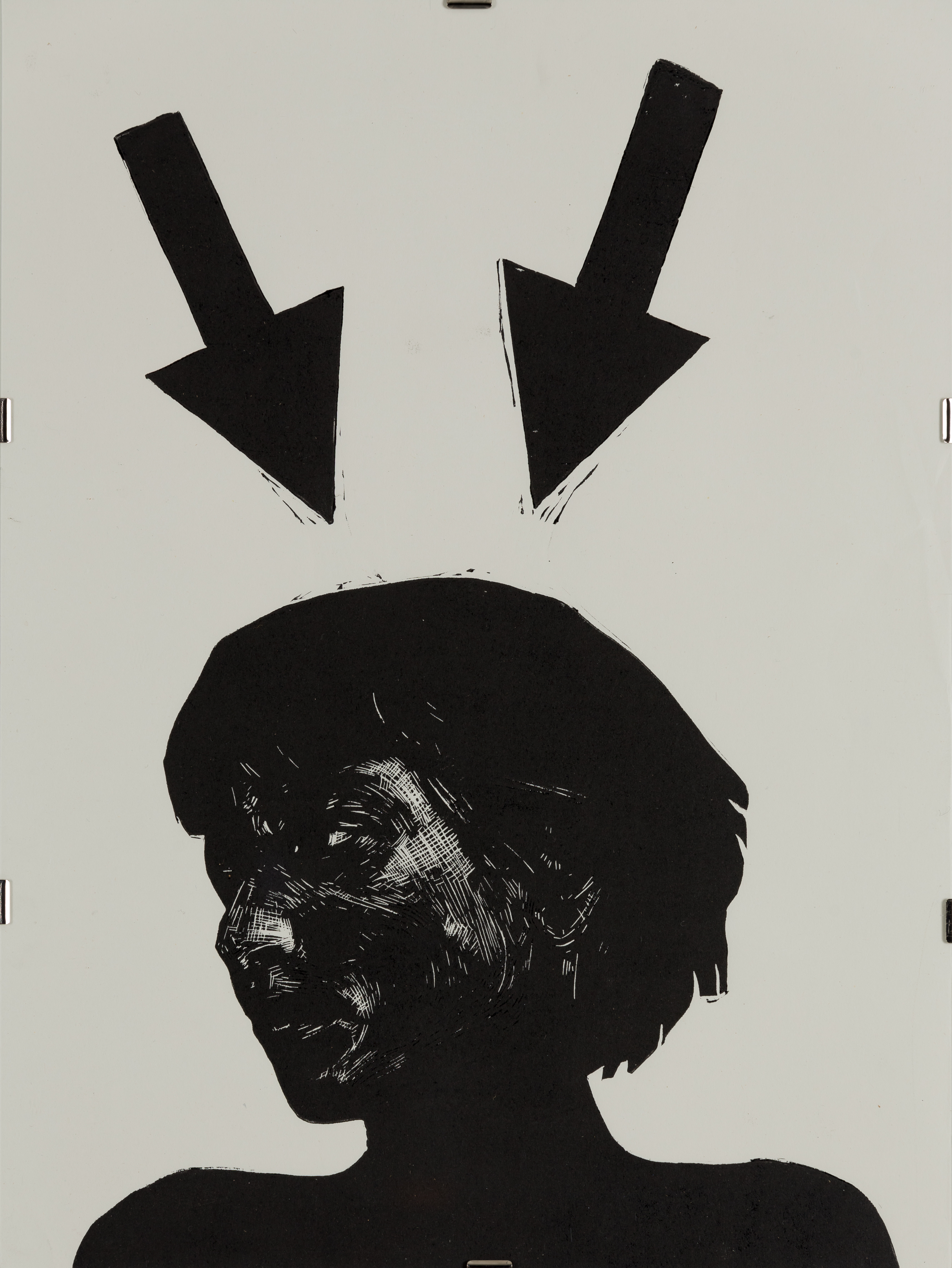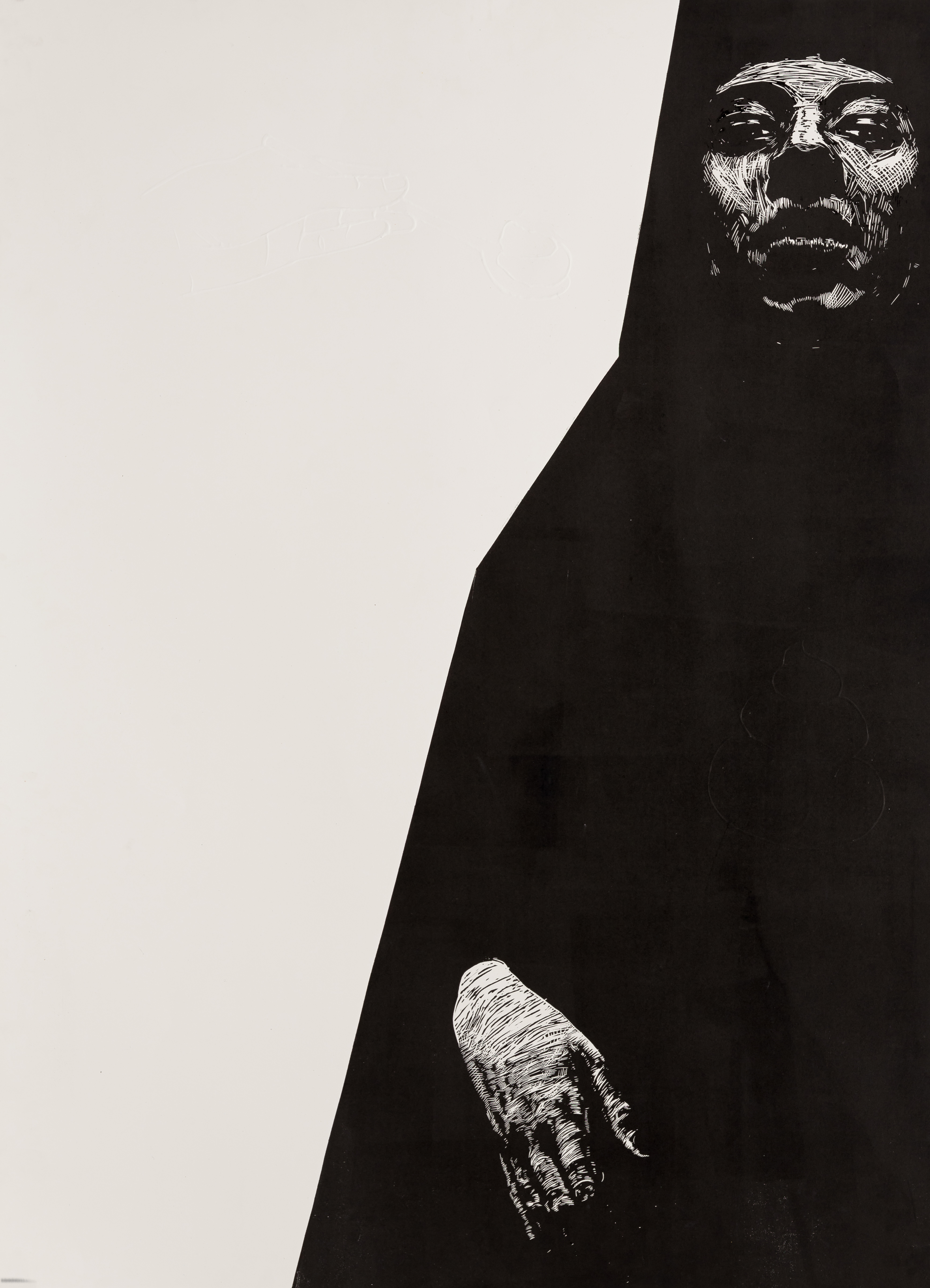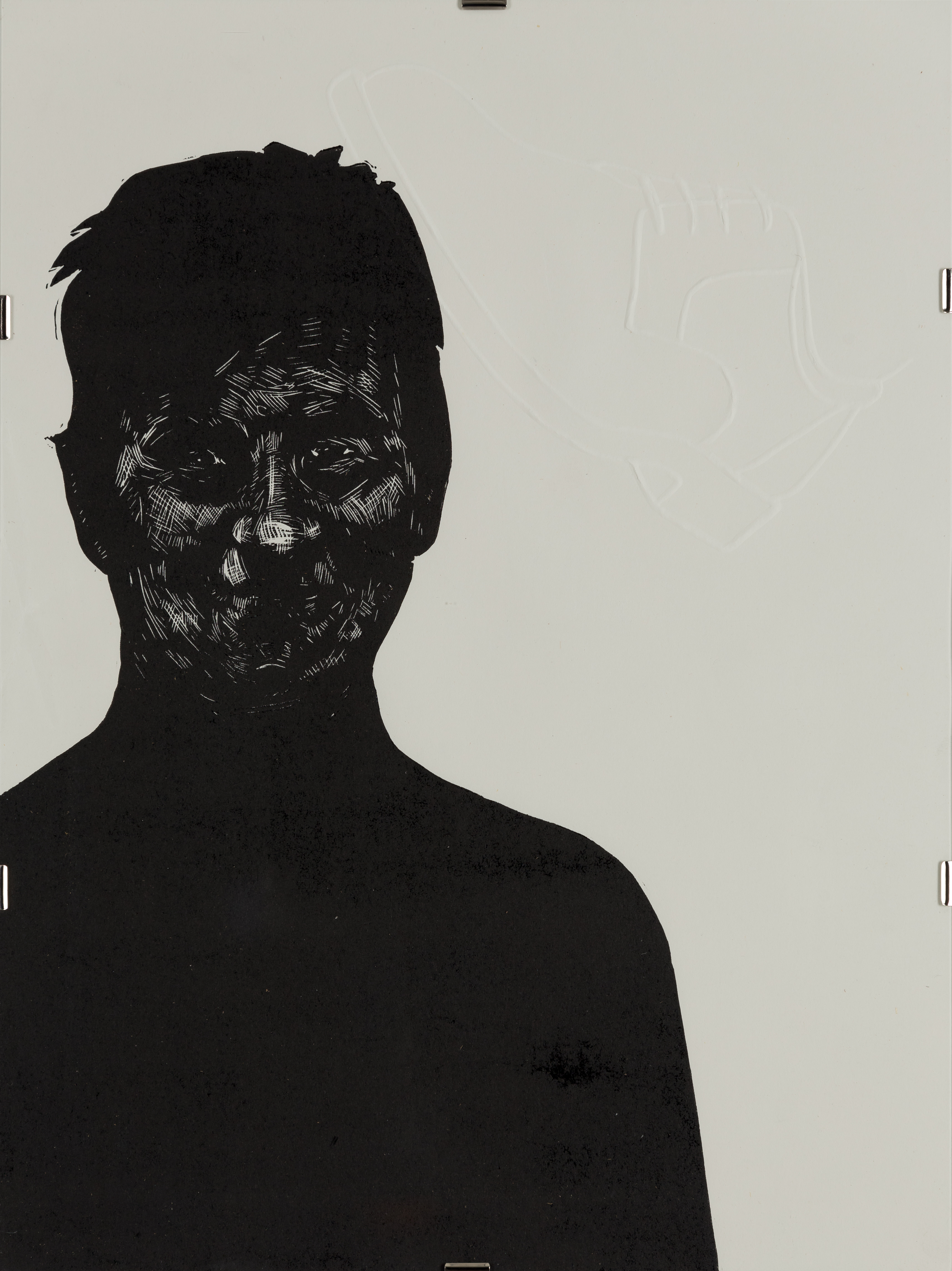 Tehnica folosită este linogravura, peste care au fost suprapuse simboluri realizate în timbru sec. Simbolurile sunt elementele ce generează hazardul care se poate abate oricând asupra individului, schimbând astfel tonalitatea lucrărilor din simple auto-portrete în unele cu o încărcătură critică asupra societății contemporane.