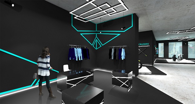Amenajarea include în plus diverse spații interactive, special concepute pentru ca utilizatorul să își poată personaliza întreaga experiență. Printre acestea se numără o zonă de modificare virtuală a motocicletelor, una de personalizare a articolelor vestimentare cu ajutorul patch-urilor, un simulator, o zona de recepție și un lounge dedicat clienților.