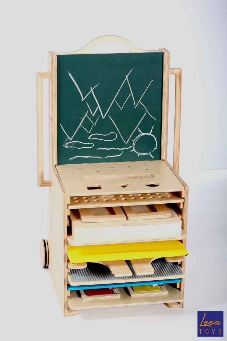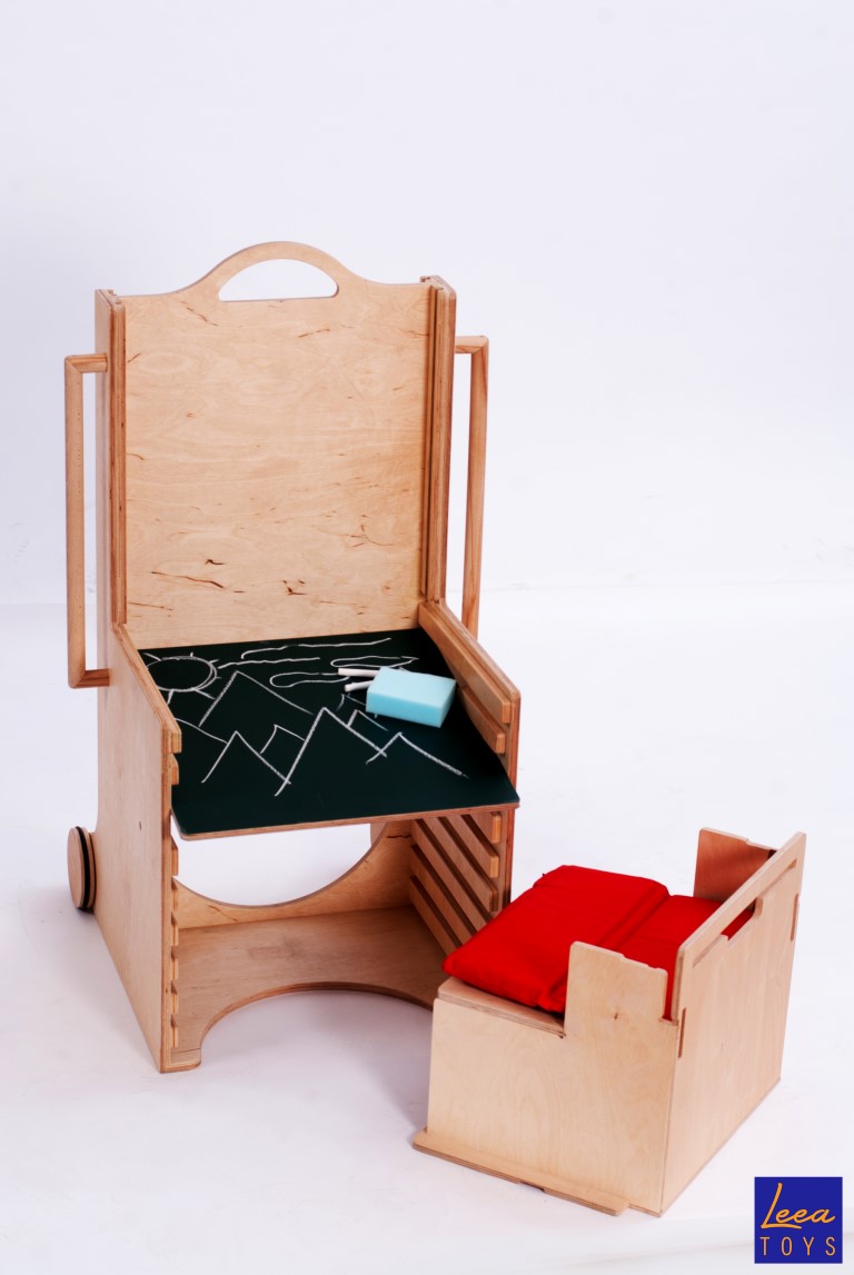 The toddler station is a multifunctional, adaptive, mobile piece of furniture/toy/educational device produced in plywood, created for the use of children 6 months to 6 years of age. It has 10 basic functionalities (learning tower, working table, cabinet with locks, dall house, lunch chair and table, rocking chair, slider, climbing wall, shapes sorter, blackboard/magnetic board ) and an infinite number of other functionalities through add-ons(kid’s mockup kitchen, washer/dryer, geo board, table with light , counting machine, mini kart , mini trampoline, etc. )