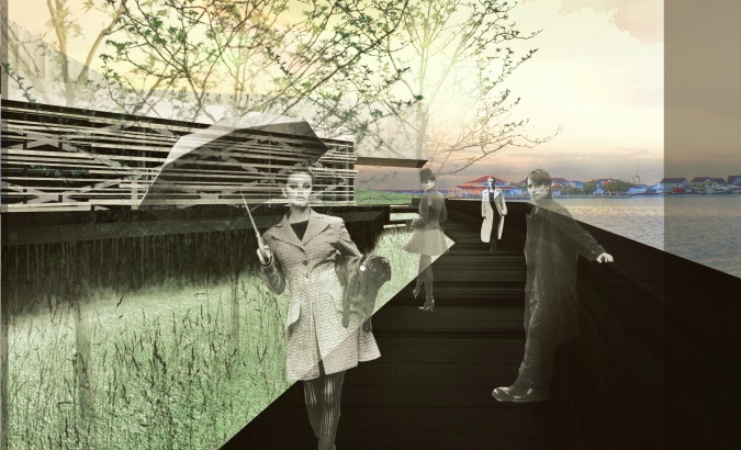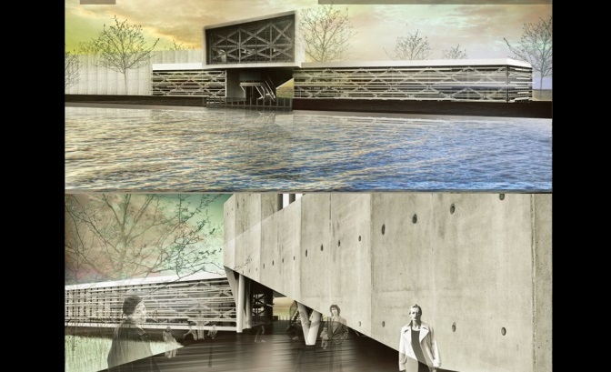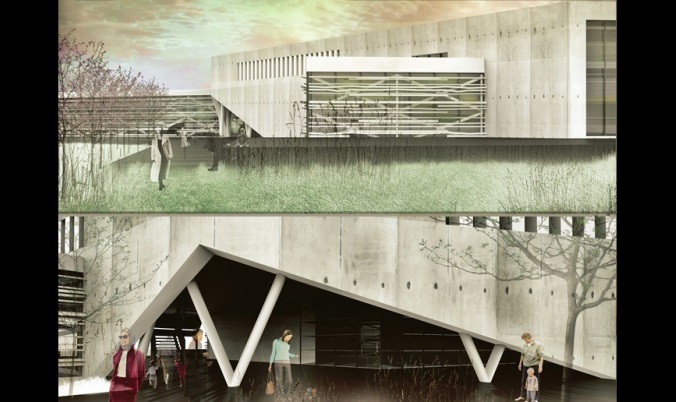 S-a propus extinderea pietonalului și limitarea accesului carosabil în parc. Accesul pietonal se continuă pe sub clădire, volumul din zona respectivă de parter ridicându-se de la nivelul 1 în sus, tocmai pentru a ridica perspectiva către râu.