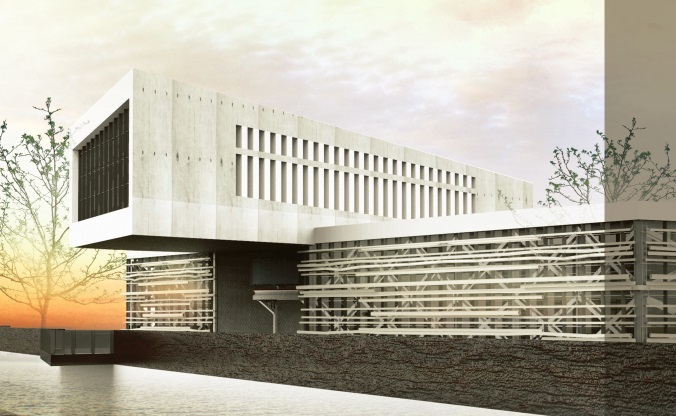 Forma etajului contrazice forma parterului, dar se menține un traseu fluid de vizitare a interiorului. Sunt propuse două curți interioare amenajate pentru o mai bună iluminare și, în același timp, pentru a crea spații verzi în completarea parcului în care se află terenul, astfel oferindu-se o mai bună integrare în sit.