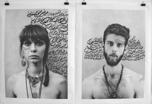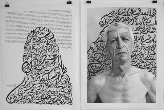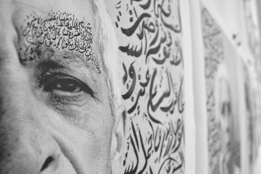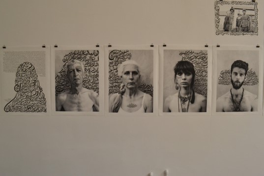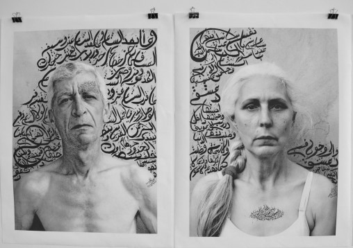 Caligrafia arabă dispusă pe portrete asemenea unor cicatrici pentru a exprima intuitiv legătura cu orientul și în același timp pentru că emoțiile din aceste versuri sunt ascunse asemenea suferințelor din sufletele modelelor. Versurile folosite în scopul de a spune suferința fiecăruia sunt însumate pentru a reda povestea familiei în autoportretul caligrafic pentru a sugera o existentă trăită „fără viață” în umbră războiului.