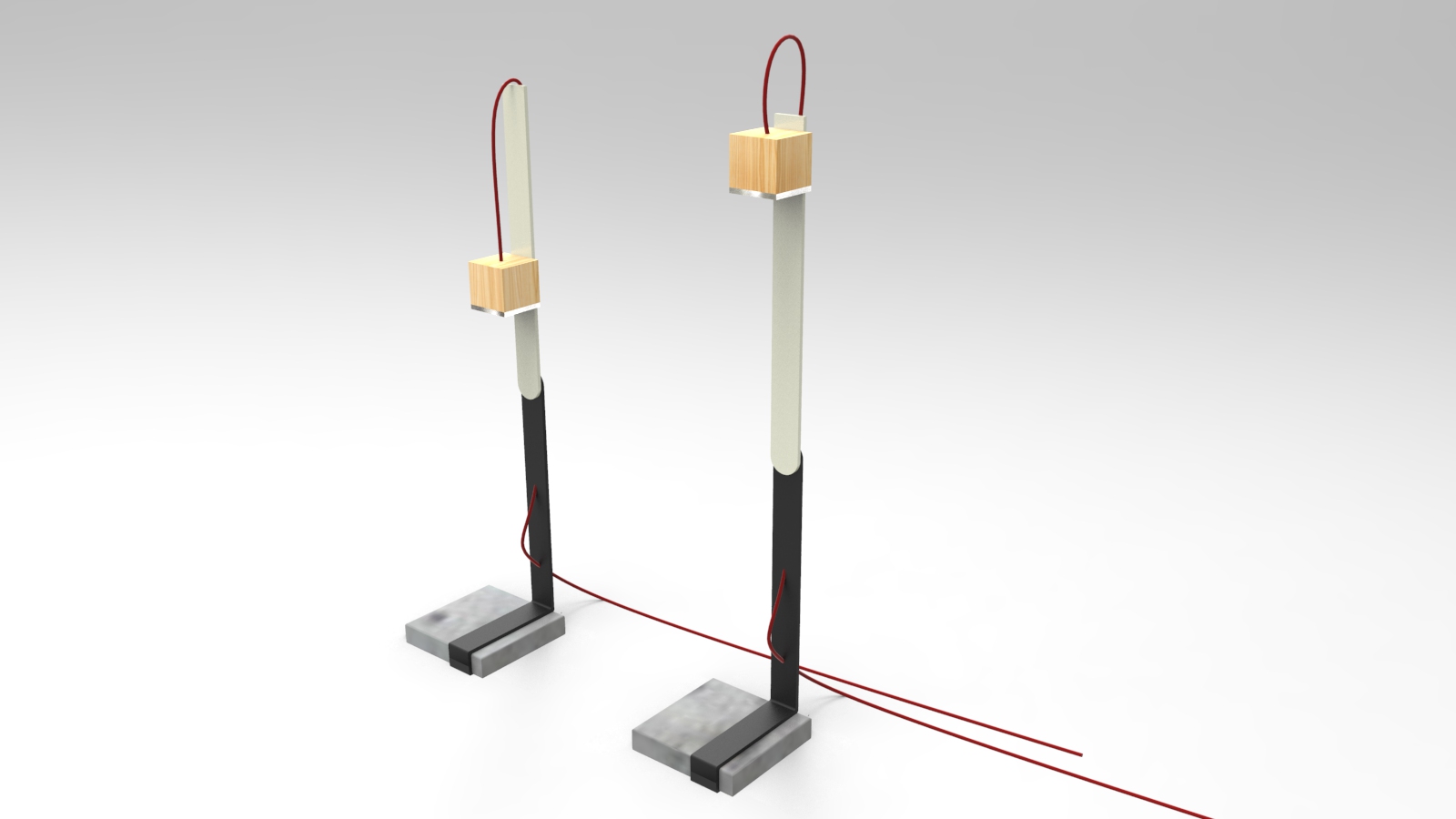 0.90 represents his attempt to exclude complicated mechanism from an usual desk lamp. We can speak about a minimalist lamp that uses magnets to create extrafunctions. It is composed of three main parts: a concrete base, a metallic structure and a wooden cube that contains a light source (led) and can be moved along the metallic structure.