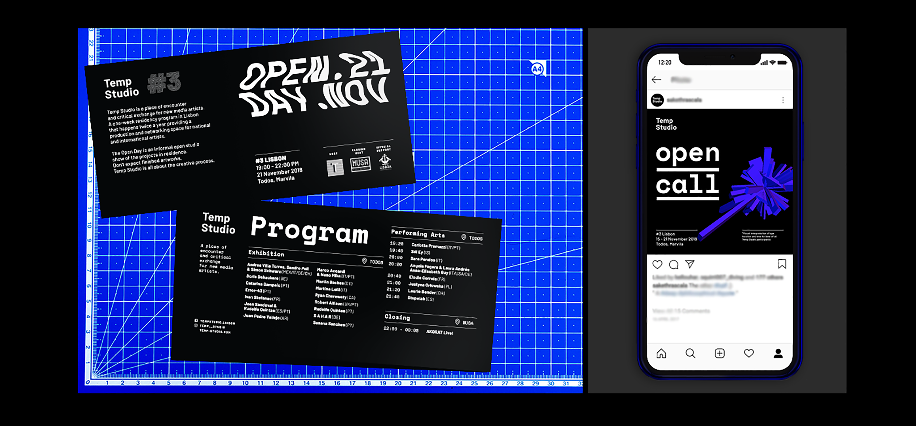 Lucian Lupu has coordinated the designing of the verbal and graphic identity for the third edition of Temp Studio (Portugal), a one-week residency program for new media art. In this edition, the challenge was to create a language that highlights the relationship between art and technology, while maintaining a neutrality that doesn't suppress creativity of the participants.