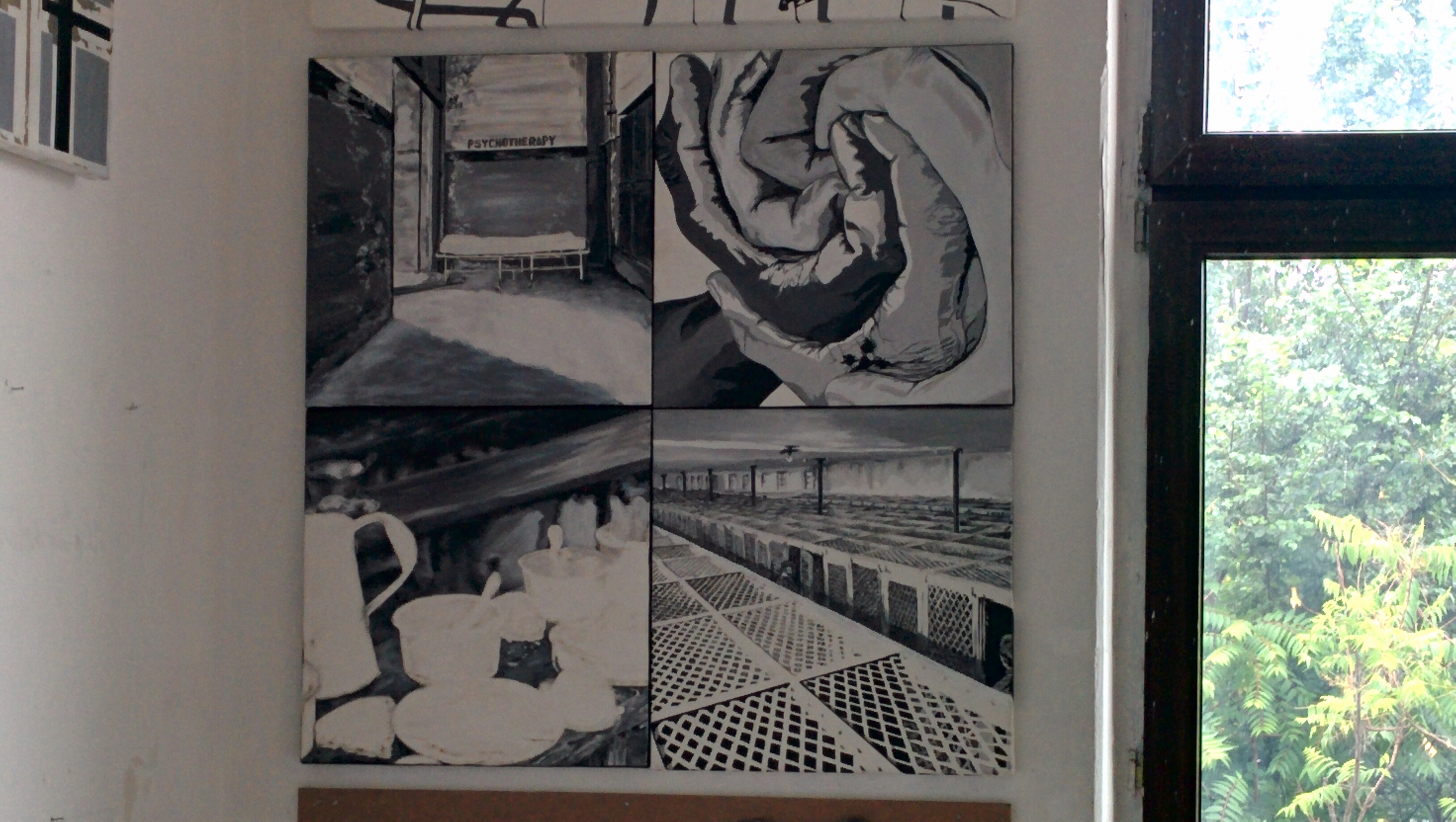 Lucrările de mari dimensiuni reprezintă cadre ale spațiilor închise, în care prezența ferestrelor indică în sine un spațiu închis. Pânzele de 70/100cm fac apel la elementele folosite în penitenciar pentru a securiza spațiul exterior. Lucrările de 50/50 cm aduc o completare prin imagini realiste. Obiectele și articolul vestimentar folosite sunt asociate cu elemente generatoare de teamă, încărcate de emoții negative. Eliberate de reprezentarea și reproducerea materialiste, aceste construcții se spiritualizează și deschid orizonturi semantice dincolo de conținutul obiectual și formal.