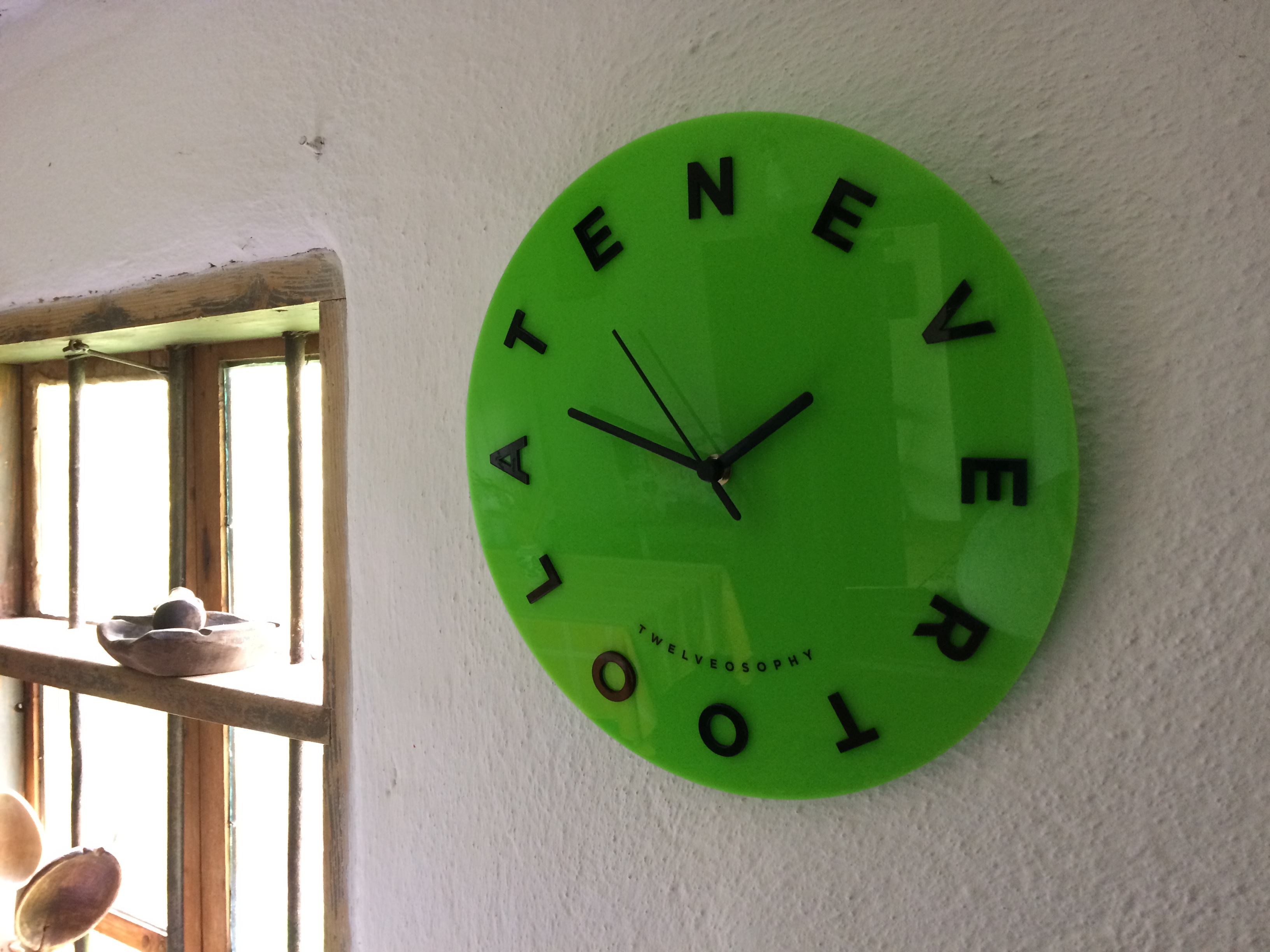 Marc created TWELVEOSOPHY - 12 wall clocks made out of colored Perspex, their numerals being replaced by 12 letters that forms 12 messages about time and love. The observation that lead to the development of the project was that, once we can understand time in the absence of numerals, we could also do it by replacing them. The concept behind the project is that the time is relative, bearing different significance for each one of us.