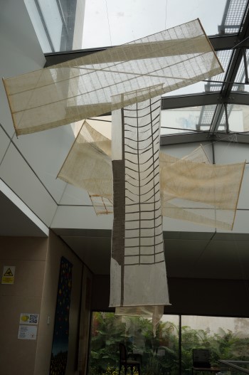 Instalația este compusă din mai multe panouri, fiecare preluând câte o formă și o structură a paletelor, acestea au dimensiunea de 180 cm pe 60 cm, sunt realizate diferit obținând o suprafață cu transparență prin suprapunerea materialelor textile sau prin intersecția firelor de ață țesute cu ajutorul războiului. Panourile țesute la război sunt realizate din fire de in subțire vopsite cu ajutorul coloranților chimici, panourile efectuate prin tehnica colajului sunt făcute din tifon rar și organza apretate și vopsite cu colorant natural.