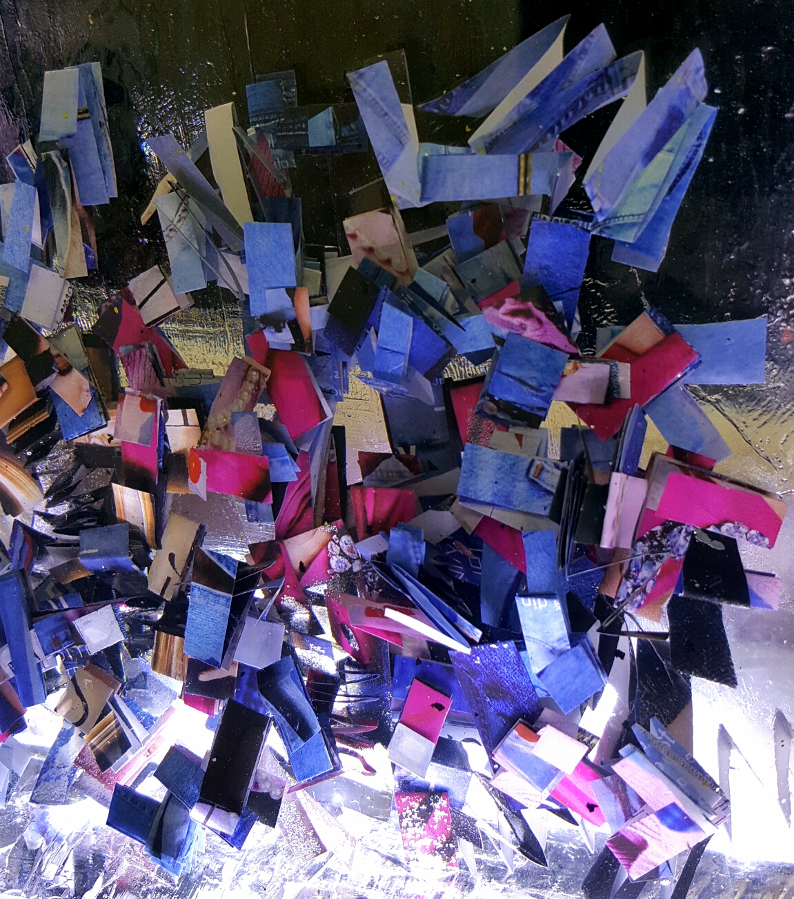 În lucrări sunt inserate bucăţi din materiale printate. Acestea contribuie la construcţia labirintului intern al lucrării, iar cromatica și compoziţia sunt influenţate de revista care a stat la baza lucrării. De asemenea, prin utilizarea unor publicaţii lunare, artistul insuflă o nouă longevitate pentru aceste materiale. Acum acestea servesc unui nou rol diferit de cel iniţial.