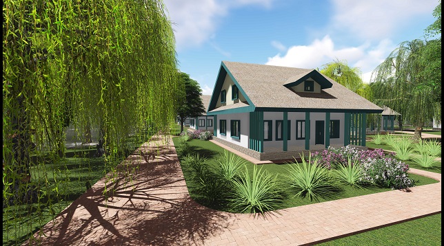 La nivel planimetric se încearcă o reprezentare cât mai fidelă a arhitecturii vernaculare specifice zonei, astfel s-au propus patru tipuri de case: casă cu prispă pe latura lungă, casă cu prispă parțială, casă cu chiler pe latură scurtă și casă cu prispă întoarsă pe două laturi.