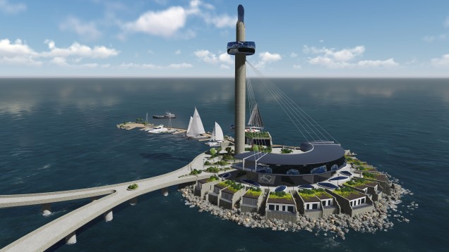 Complexul este independent din punct de vedere energetic. El utilizează enegia eoliană, solară și energia mareelor.Helipotul este propus pentru a fi utilizat numai în cazul situațiilor de urgență.