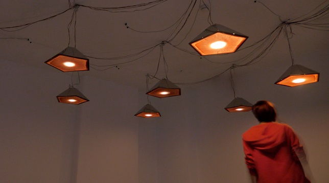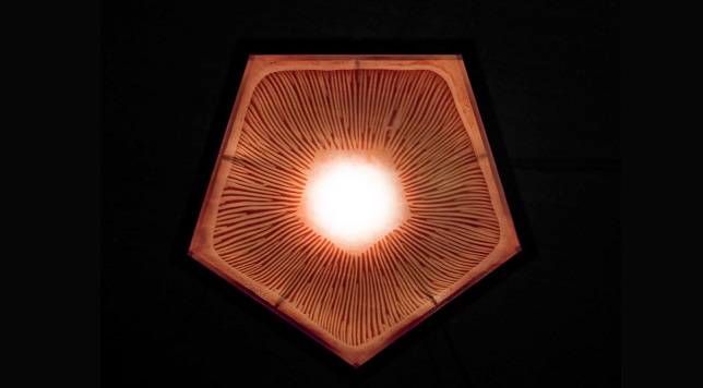 FANGAI is an interactive installation structured as a light&sound experience. It starts with a light fixture, as a pentagonal mushroom, designed for an interactive wireless audio speaker incorporated in a light bulb (an award-winning product at 2016 Consumer Electronics Show - CES). The installation consists of 20 mushrooms, each of them generating light and sounds. The soundscape is designed as an augmented interpretation of how the mushrooms' gills would sound if that could be possible to be perceived by the human ear. All the sounds are triggered by the visitors moving inside the installation.