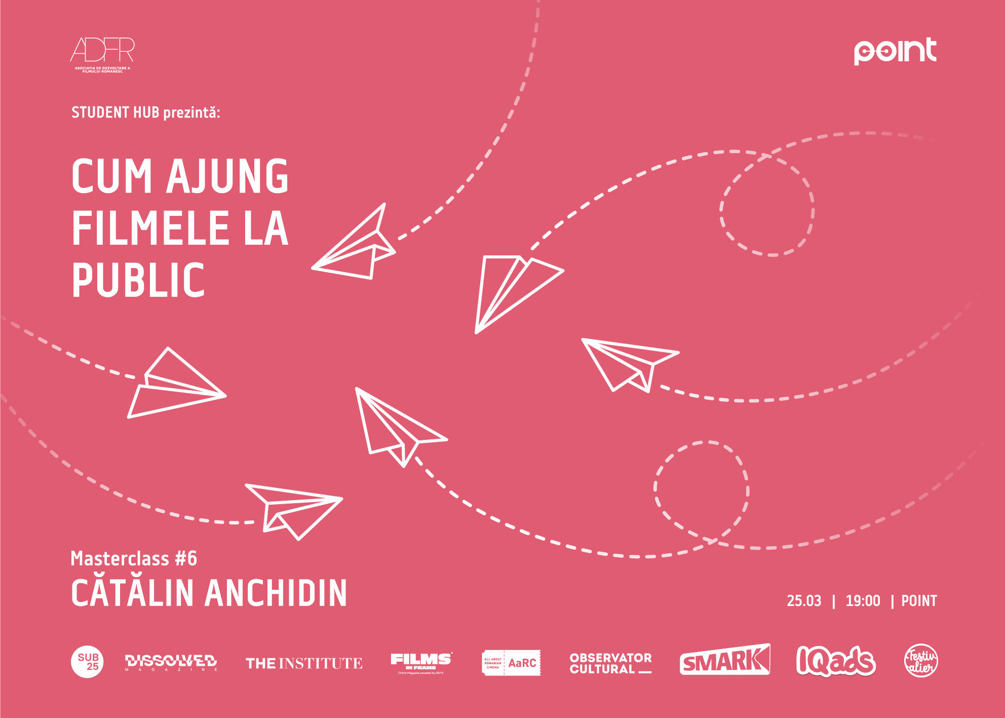 Dacă v-ați întrebat vreodată ce presupune comunicarea și marketingul în domeniul cinematografiei, Asociaţia de Dezvoltare a Filmului Românesc vă aşteaptă luni, 25 martie, ora 19:00, la hub-ul cultural independent POINT - noua casă a masterclass-urilor Student Hub.