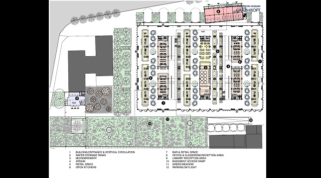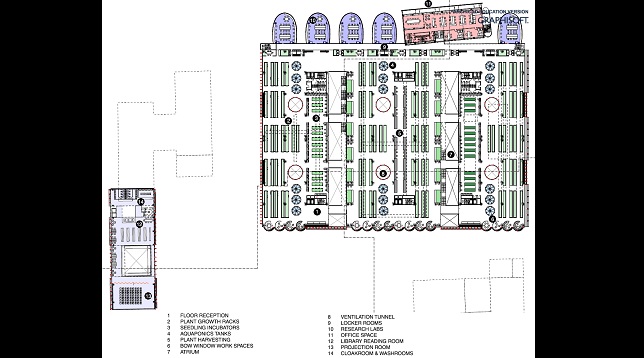 Proiectul abordează 3 teme – reducerea costurilor de transport a legumelor și fructelor în orașele mari, transformarea zonei Obor într-un centru de importanță municipală și reutilizarea patrimoniului arhitectural al fostelor platforme industriale bucureștene. Astfel, refuncționalizarea clădirilor complexului „Mecanică Fină” implică realizarea unui spațiu de creștere a legumelor și fructelor, unei biblioteci și a unor laboratoare de cercetare a tehnicilor de creștere specifice agriculturii urbane la interior.