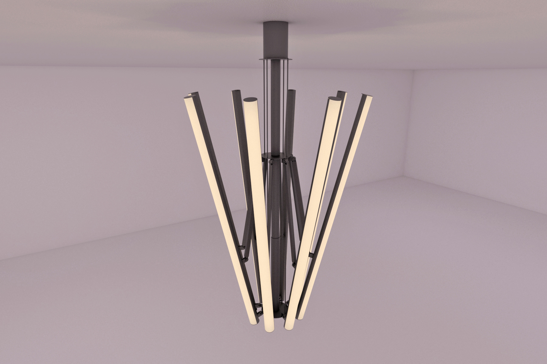 Conceived to fill large spaces with light and matter, the lamp is created from the desire to illuminate a high, industrial space, with minimum effort. The proposal is simple, minimal, and it is intended, more than anything, to be a functional, technical object.