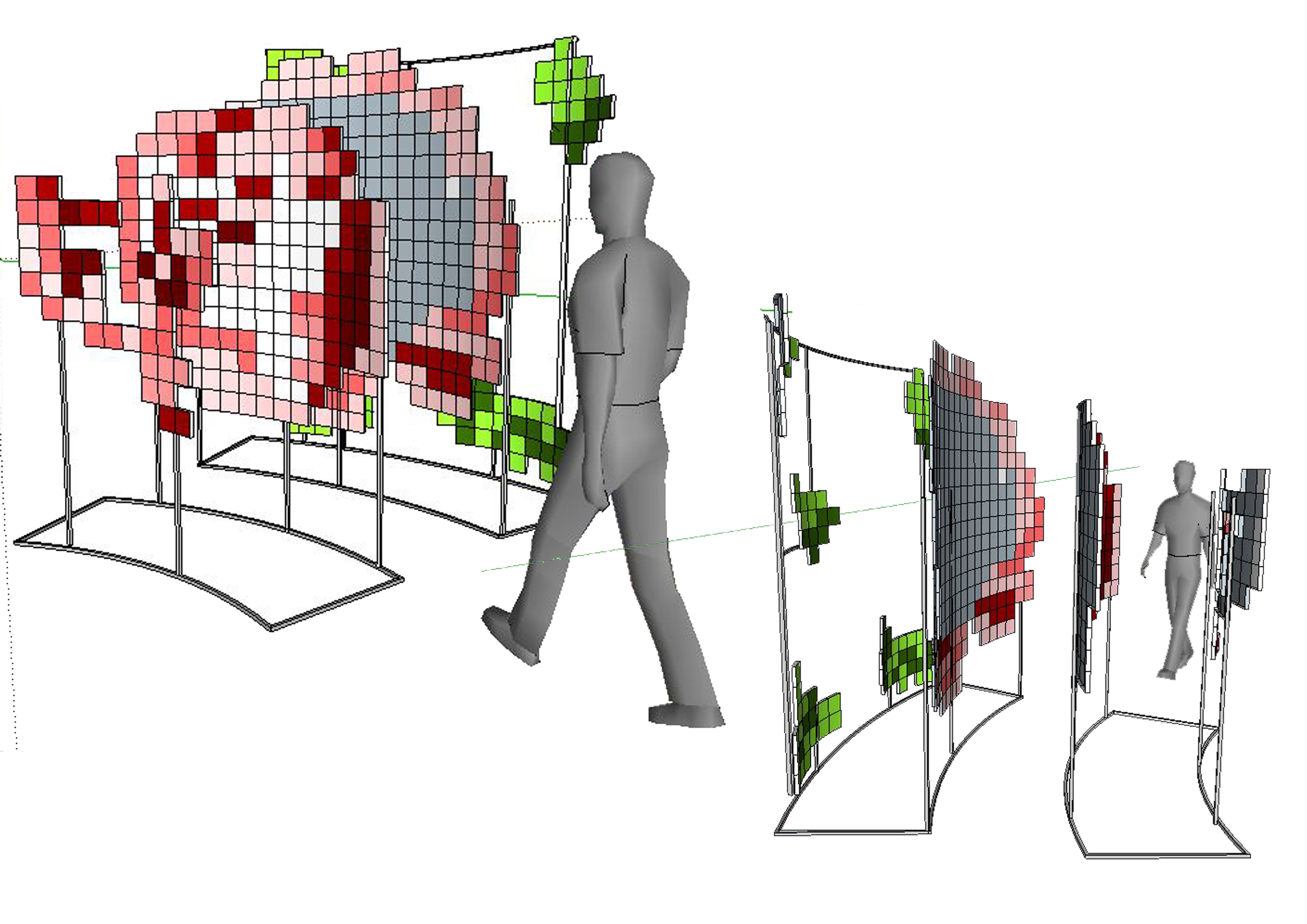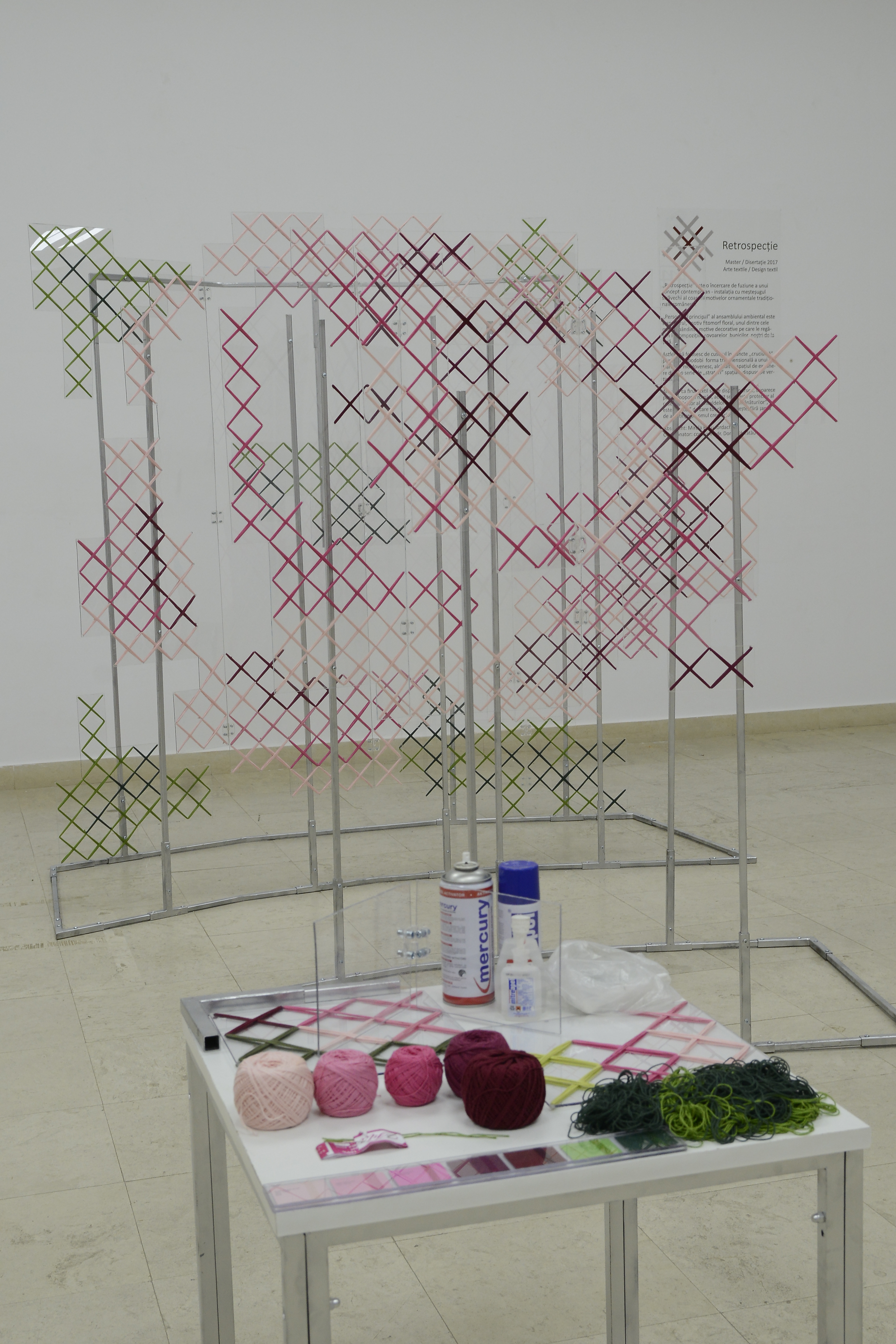 Proiectul este o încercare de fuziune a unui concept contemporan - instalația cu meșteșugul străvechi al coaserii motivelor ornamentale tradiționale românești. Elementul principal al ansamblului ambiental este trandafirul, motiv fitomorf floral, unul dintre cele mai răspândite motive decorative pe care le regăsim în compozițiile covoarelor bunicilor noștri de la țară. Artista se folosește de cusutul în puncte cruciuliță pentru a împodobi forma tridimensională a unui trandafir moldovenesc, alcătuit în spațiul de expunere dintr-o serie de straturi spațiale dispuse pe verticală. Firul este dispus în cruce fiindcă pentru poporul român, acesta este un semn protector al casei.