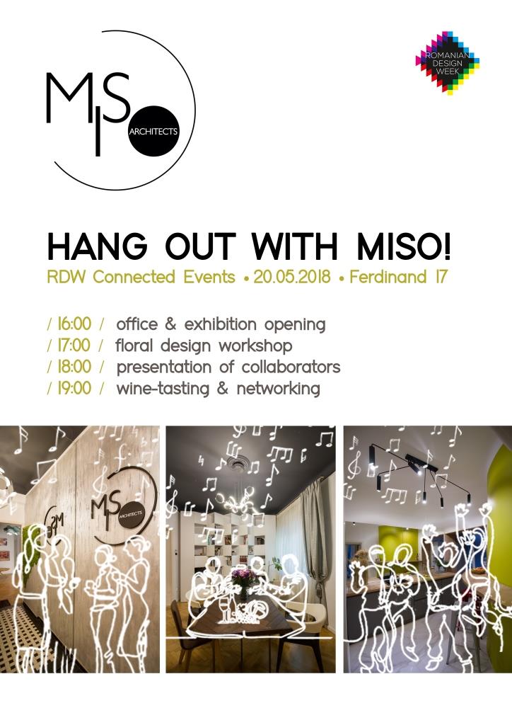 Miso Architects dorește să găzduiască un eveniment în cadrul căruia vizitatorii sunt invitați să descopere culisele lumii colorate Miso. Vor fi invitați colaboratori și designeri, prieteni ai echipei Miso, specializați în domenii diverse (cum ar fi mobilier, pictură, haine și accesorii, obiecte de artizanat), care își vor expune creațiile. Atracția principală va fi degustarea de vinuri de la o cramă românească, vinurile fiind prezentate de un specialist în domeniu. După degustare petrecerea continuă cu muzică bună și povești despre cât de mult ne place ceea ce facem.