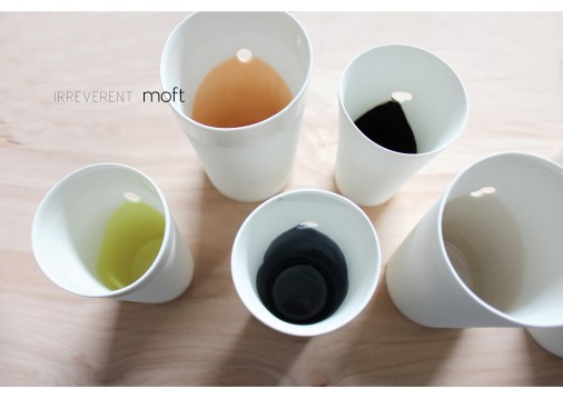 MOFT’s ceramics project “Irreverent” challenges the search for perfection and efficiency in contemporary society, while working closely with local craftsmen and makers. The design concept is about offering a functional product with different uses for everyday life, while keeping a sense of humor and inviting the user to interact differently with a common object. Flaws are regarded as the center focus or as decoration and they’re underlined chromatically. The rough and smooth porcelain textures are used to give the user a complete guide of usage and a perfectly satisfactory experience.