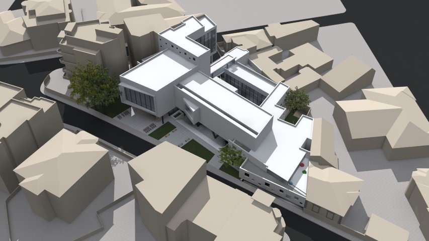 Zona surprinde o varietate de stiluri şi niveluri care se succed armonios. Proiectul pe care l-am propus susţine această armonie printr-o trecere treptată de la corpuri mai joase la corpuri mai înalte. Astfel, ansamblul semi-pavilionar se integrează în peisajul urban specific al străzii, fără a deranja construcţiile învecinate cu semnale verticale improprii.