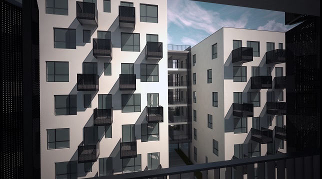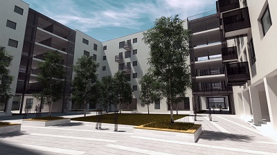 În centrul sitului se conturează o compoziție din trei bare de locuit, similare blocurilor din nord, dar care delimitează o curte interioara. Astfel, se creează o curte protejată pentru locatarii noi. De asemenea, parterul acestor trei volume este dedicat locatarilor, având funcțiuni publice adresate lor.