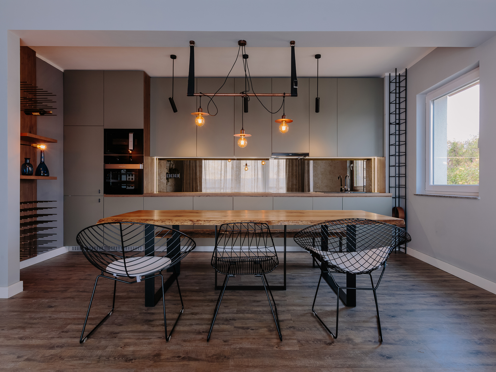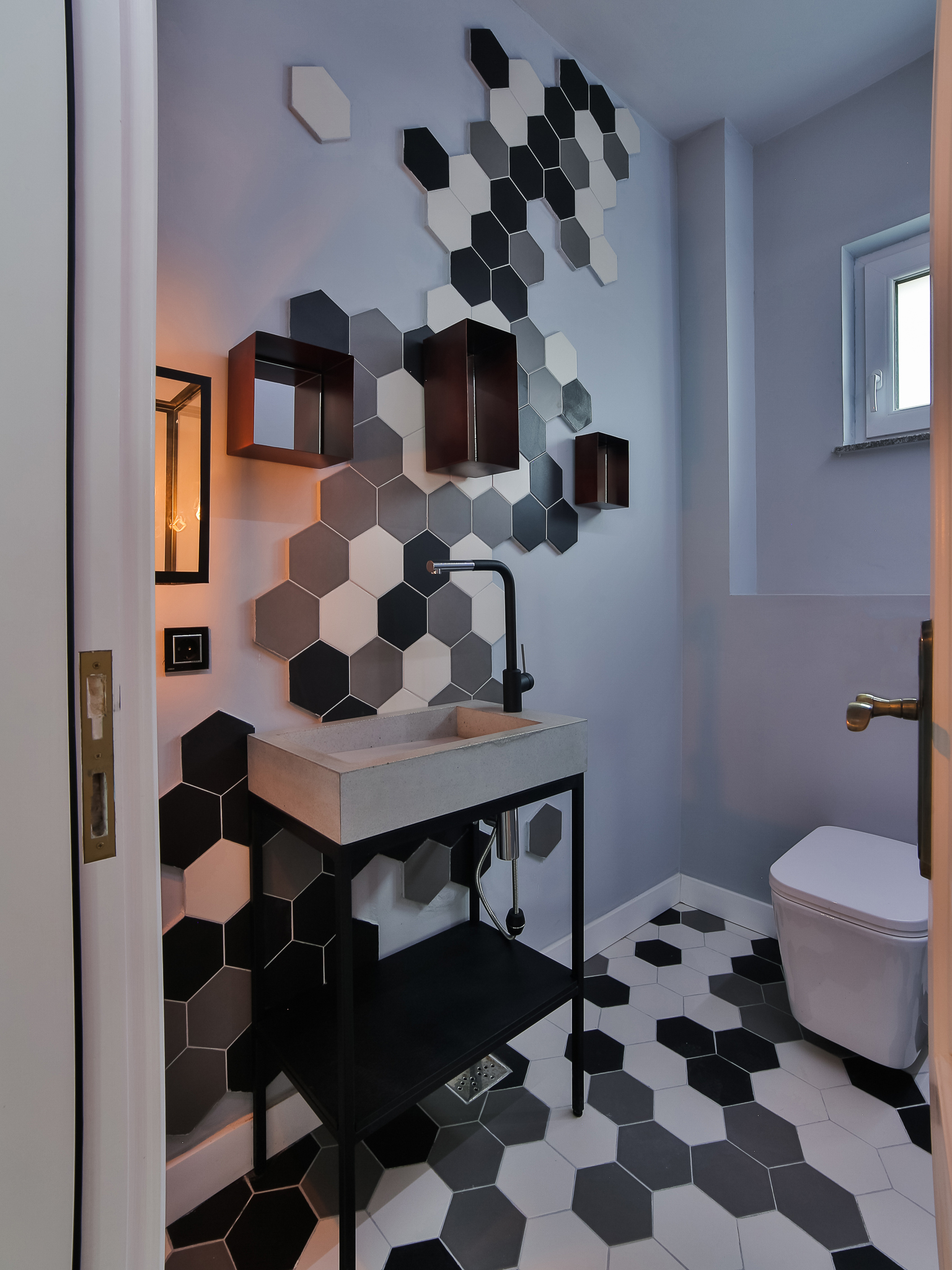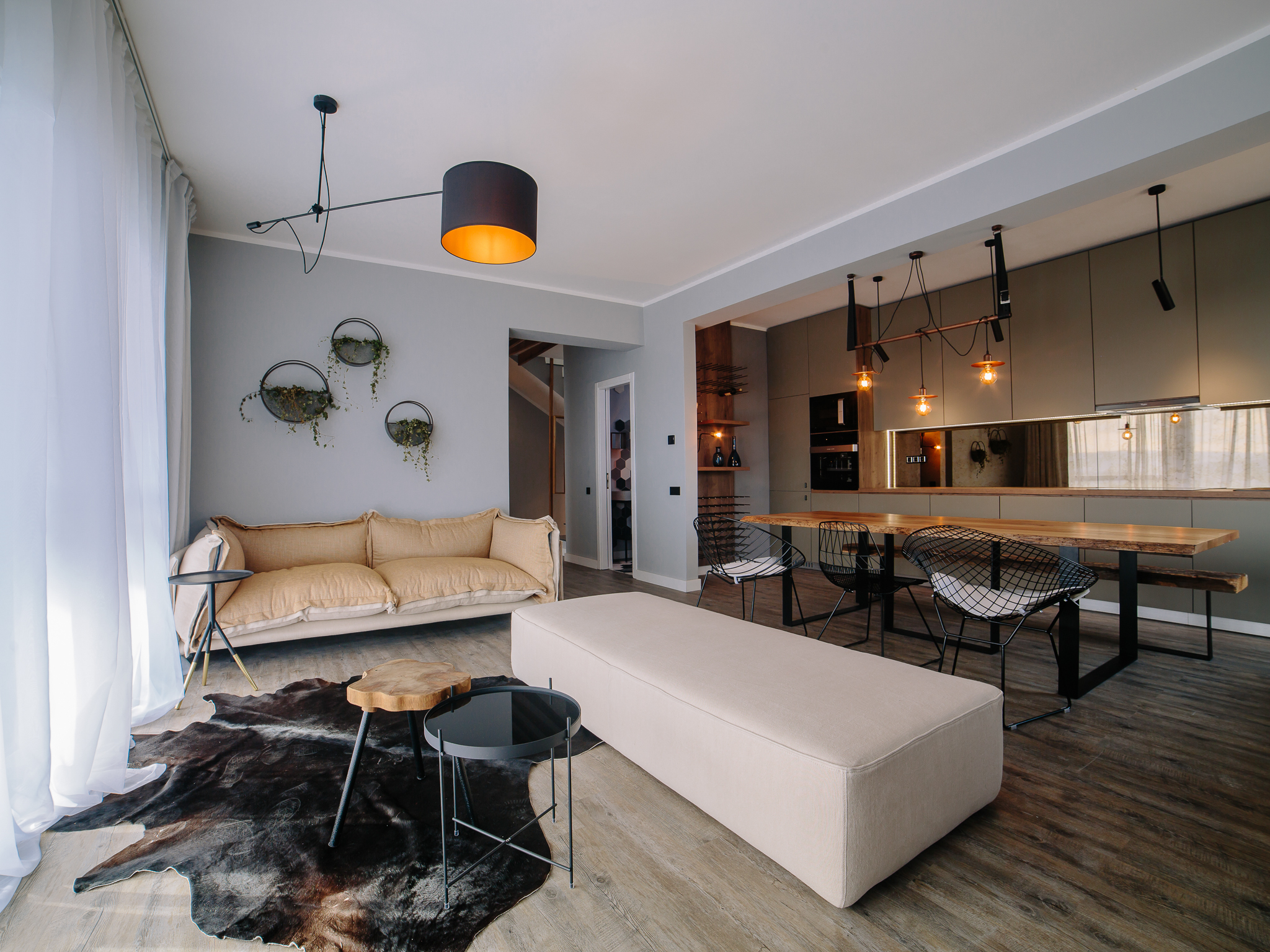 With a breathtaking view from above Cluj Napoca, V House has the urban, retro, artsy, altogether contemporary air, mingling straight and tumultuous lines. In a minimalism merged with a bit of coziness, the house opens itself both to the needs of the lonely, bohemian Cluj artist and to those of a large family.