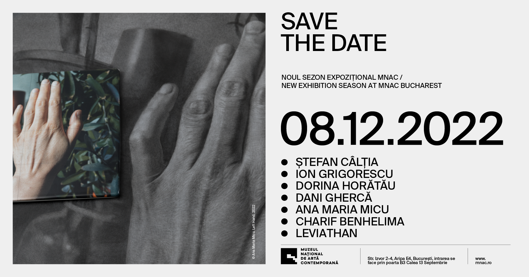 VERNISAJ: Joi, 8 decembrie, ora 19:00 - MNAC deschide noul sezon expozițional. Zece expoziții, dispuse pe cele cinci niveluri ale muzeului, în spații expoziționale și spații alternative,  demonstrează încă o dată că, indiferent de contextul dificil, rolul artei se menţine la fel de viu și de ancorat în prezent.