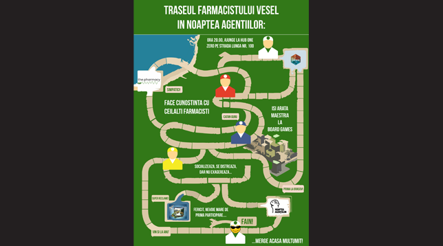 „În Noaptea Agențiilor, alătură-te farmaciștilor de la The Pharmacy și arată-ți măiestria la board games, socializare și vizionare de reclame”.