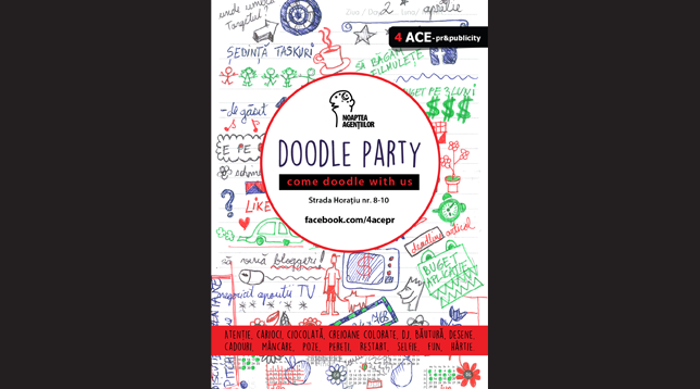 "Let’s doodle! Acesta este mesajul celor de la 4 ACE, care îi invită pe toți cei ce vor să vadă cum știu ei să îmbine munca și distracția, la sediul din Horațiu nr 8-10. Vă promit un party cu creioane colorate, carioci, markere și multe idei"