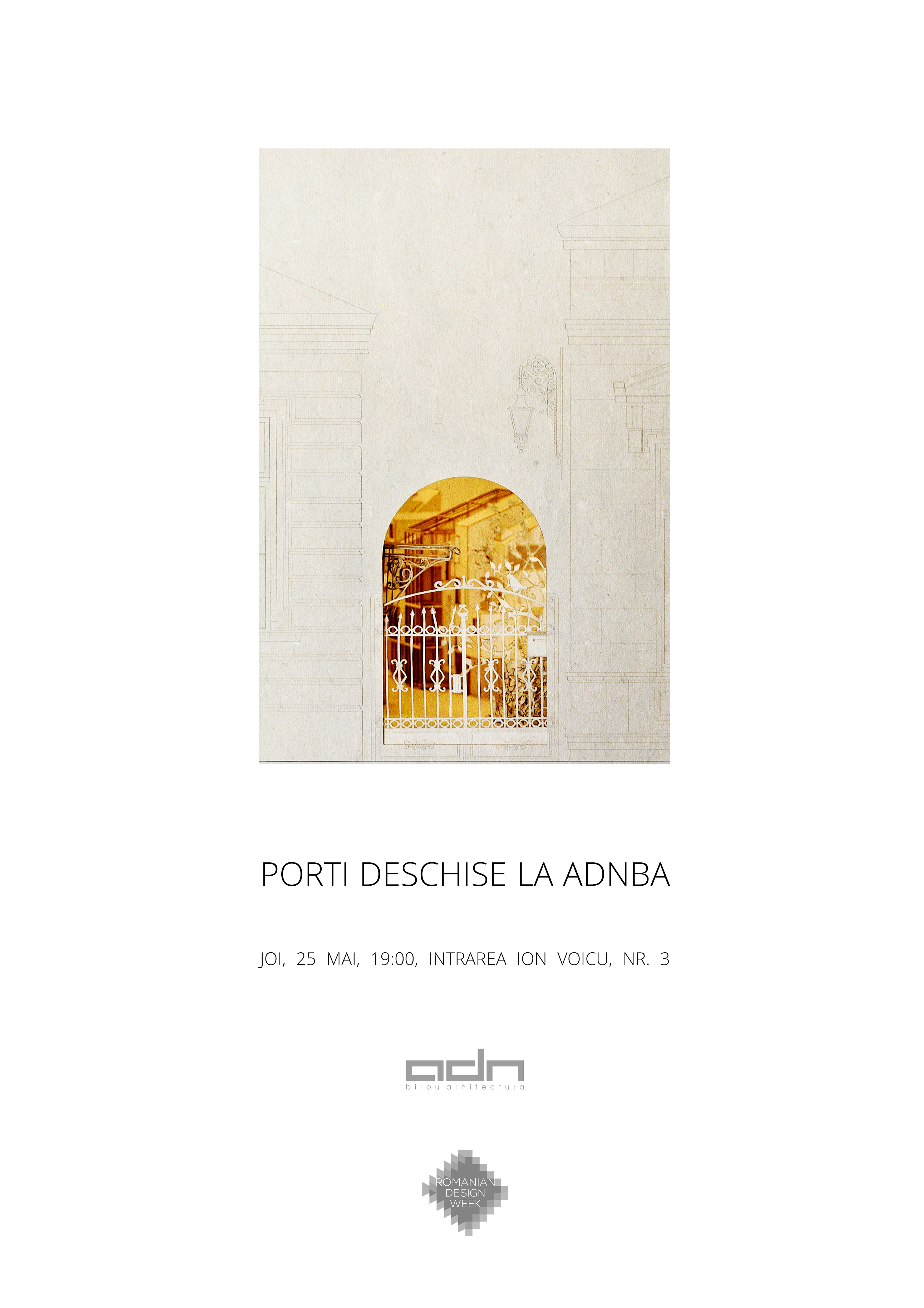 După succesul edițiilor precedente, Noaptea Studiourilor de Arhitectură revine pe 25 mai, în cadrul evenimentelor Romanian Design Week (20 mai- 28 mai). Organizat de The Institute, evenimentul promovează industriile creative prin implicarea studiourilor de arhitectură din București ȋn evenimente interactive ce au loc simultan ȋn sediile lor sau ȋn spații conexe. Astfel, 16 studiouri de arhitectură își deschid porțile publicului larg și, ȋntr-un cadru informal și relaxat, îi invită pe studenți, colegi arhitecți și designeri să viziteze și să cunoască echipe și proiecte.