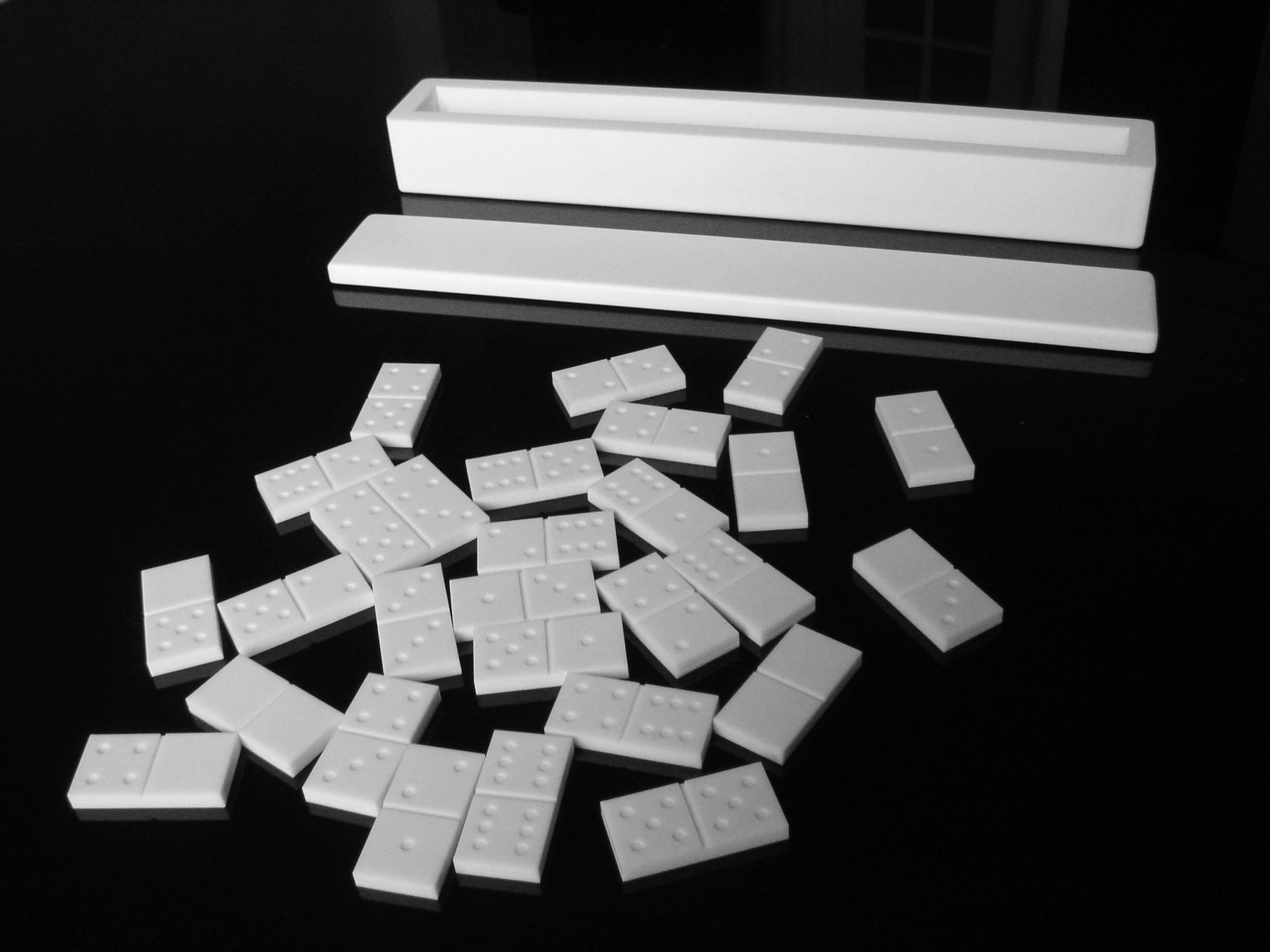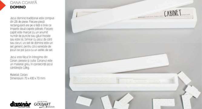 This domino was first a gift and a reminder of a particular childhood of someone living in Drumul Taberei, a neighbourhood in Bucharest where the domino is not so popular. The game is made out of Corian, a heavy material, being much heavier than it looks.