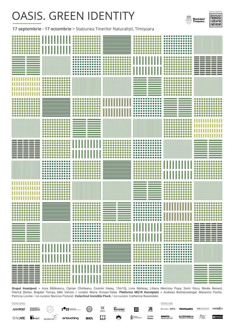Expoziția de artă contemporană „Oasis. Green Identity”, organizată de grupul Avantpost în parteneriat cu Universitatea de Științe Agricole Timișoara și curatoriată de Maria Orosan-Telea, reunește artiști din Timișoara în colaborare cu reprezentanți ai Platformei MQ18 Kunstplatz München și Colectivului Invisible Flock Leeds. Obișnuindu-și publicul cu abordări inedite, artiștii propun un nou concept curatorial de tip experimental într-un spațiu alternativ pe strada Rozelor nr. 4, Stațiunea Tinerilor Naturaliști, ce aparține Universității de Științe Agricole Timișoara.