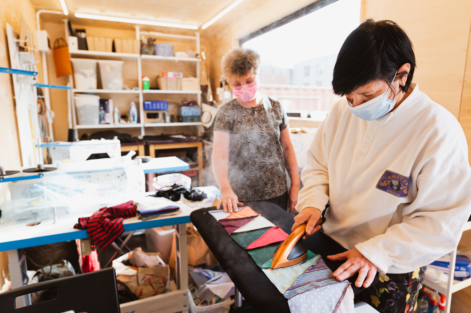 The burden of the current unsustainable fashion industry practices is often placed on the shoulders of the end consumer. ONE.shirt aims to change this perspective by developing an ethical practice that educates the community to be better together! Creating a ONE.shirt is a process that gets divided into small stages of production, so that all team members can collaborate based on their skills, all the while ensuring a high quality final product. Finishing a ONE.shirt can take between 17 and 22 hours, with the contribution of at least 5 members with vulnerable social backgrounds. The community and buyers are also invited to contribute by donating their used textiles, buying other smaller ONE products, but also by requesting customized ONE shirts made with their own beloved fabrics.