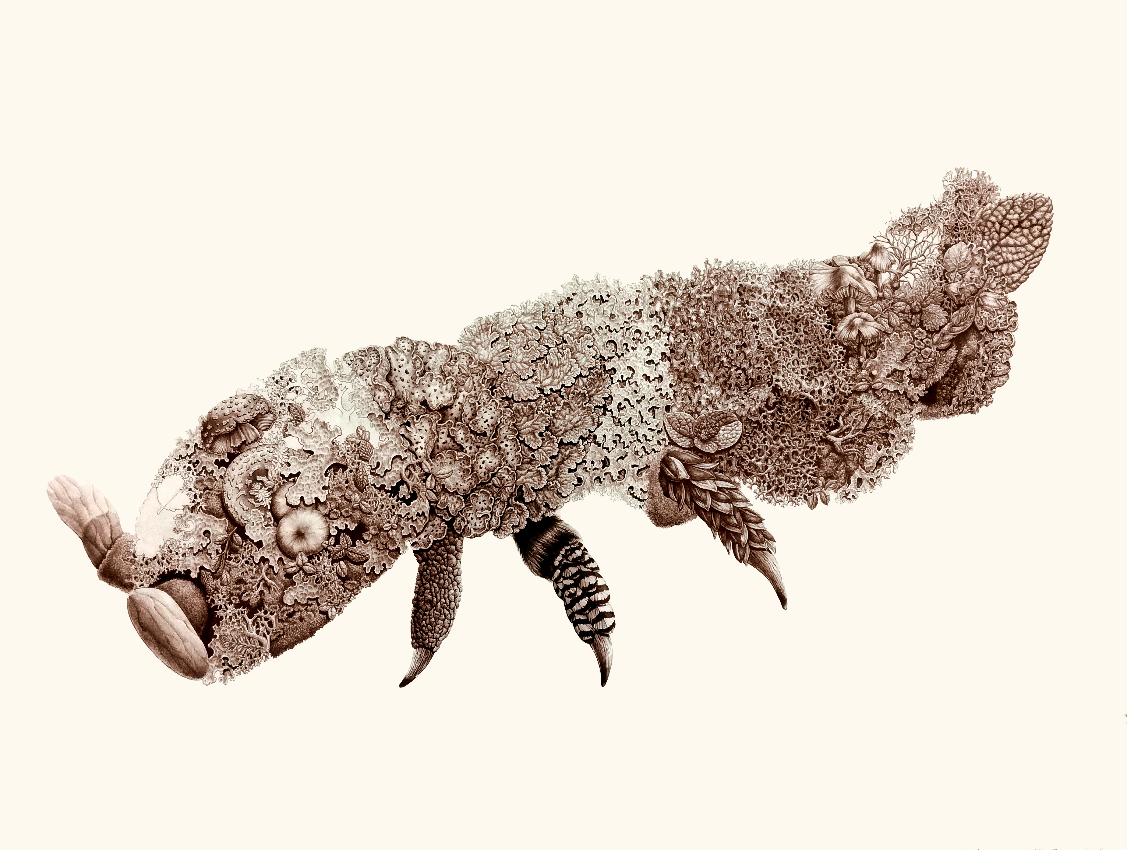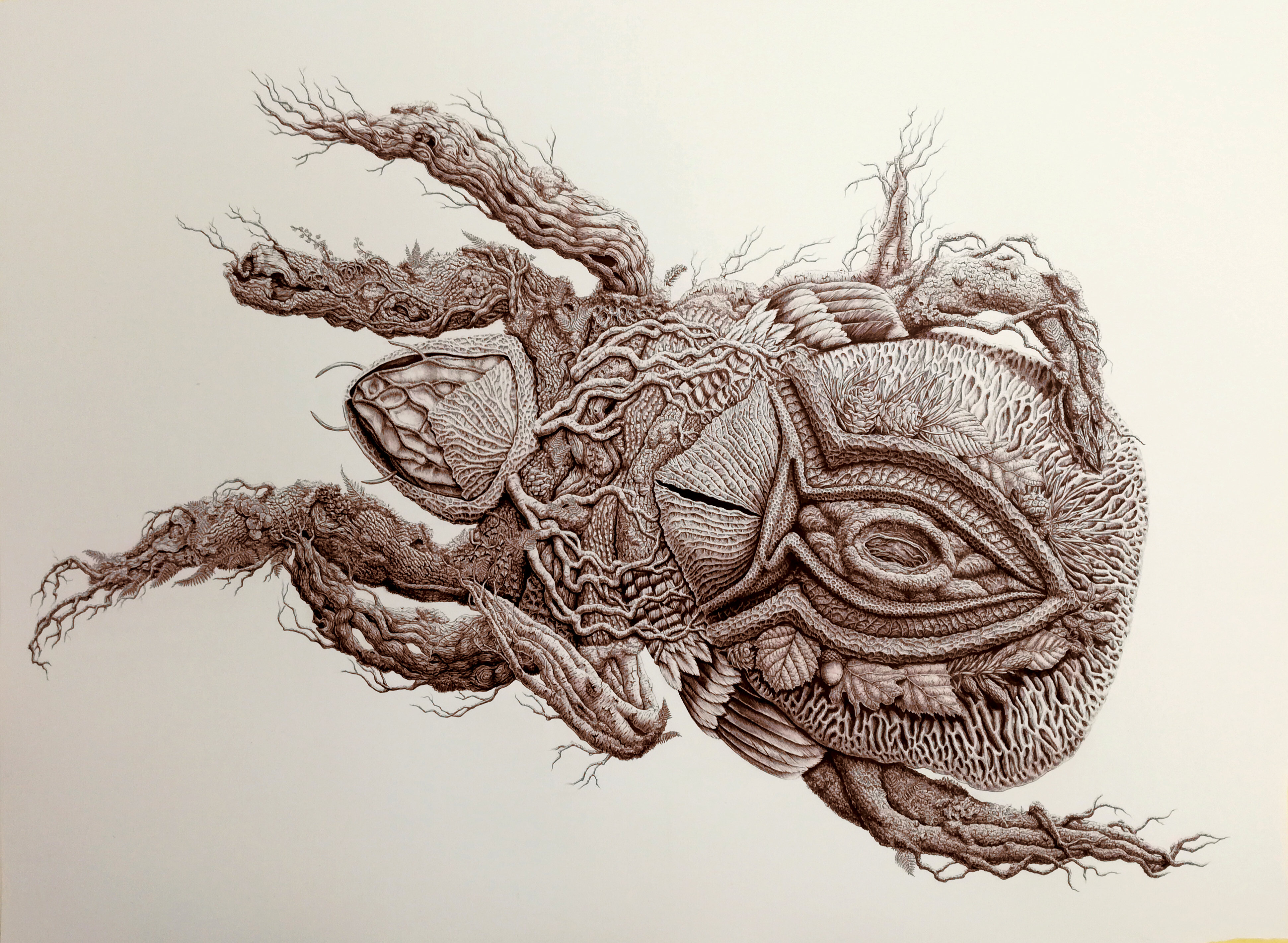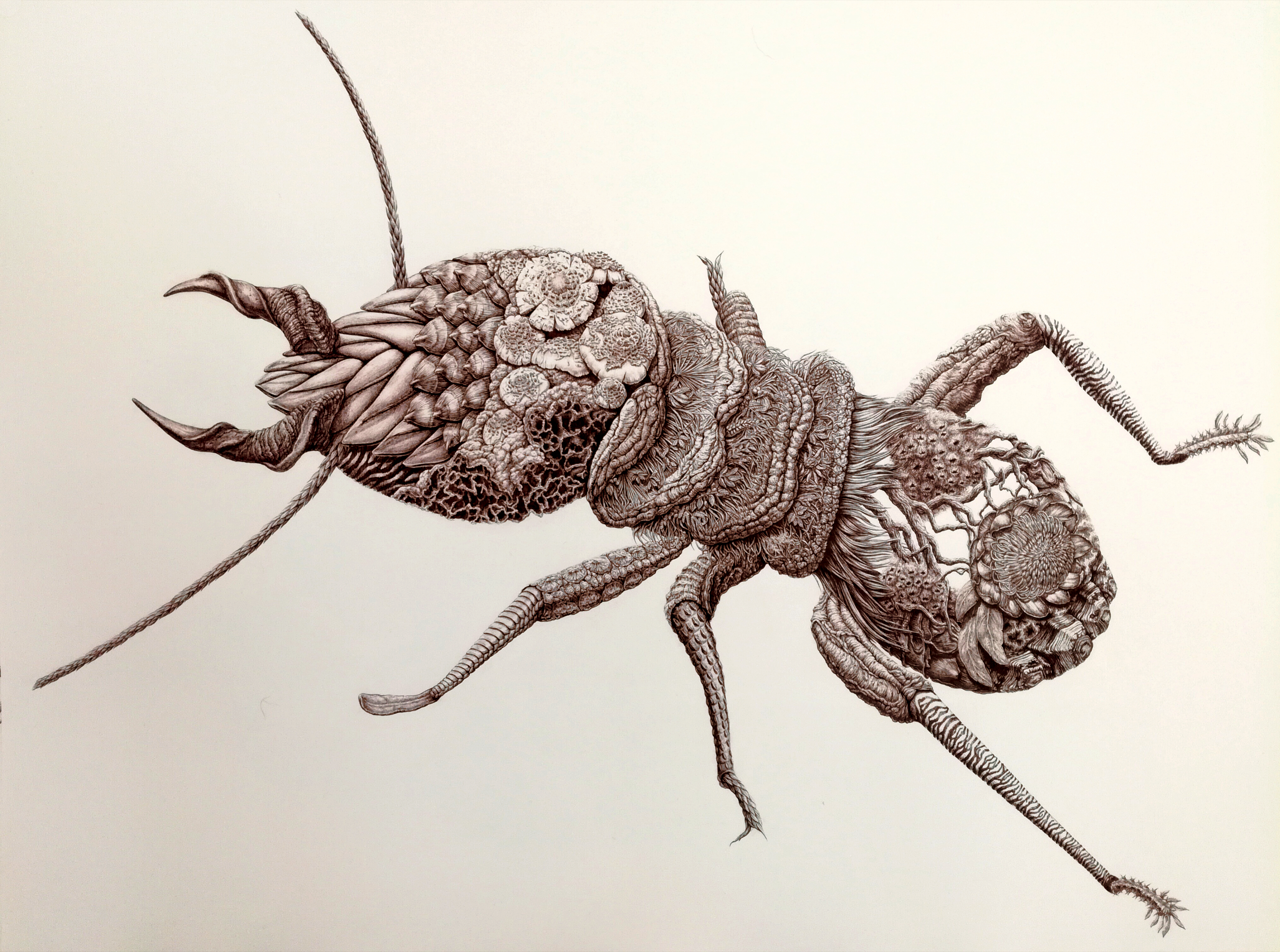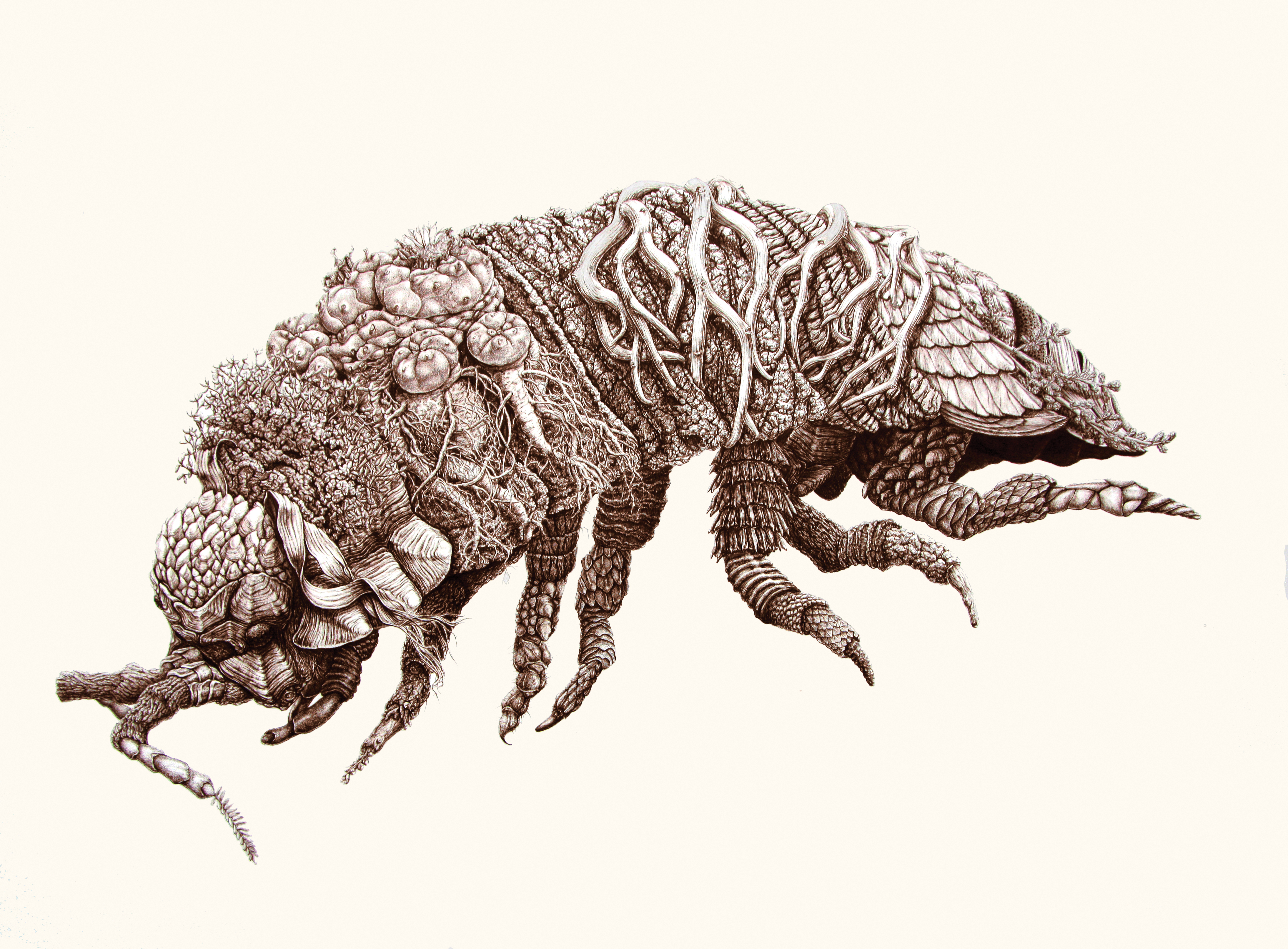 Pornind de la aceste informații, structura de bază a compozițiilor - reprezentând corpul artropodului - este alcătuită dintr-o multitudine de elemente, forme și pattern-uri aparținând unor specii caracteristice biomului specific. Astfel, compozițiile realizate în tuș sepia pe hârtie constituie o metaforă vizuală a diversității și unității specifice lumii vii.