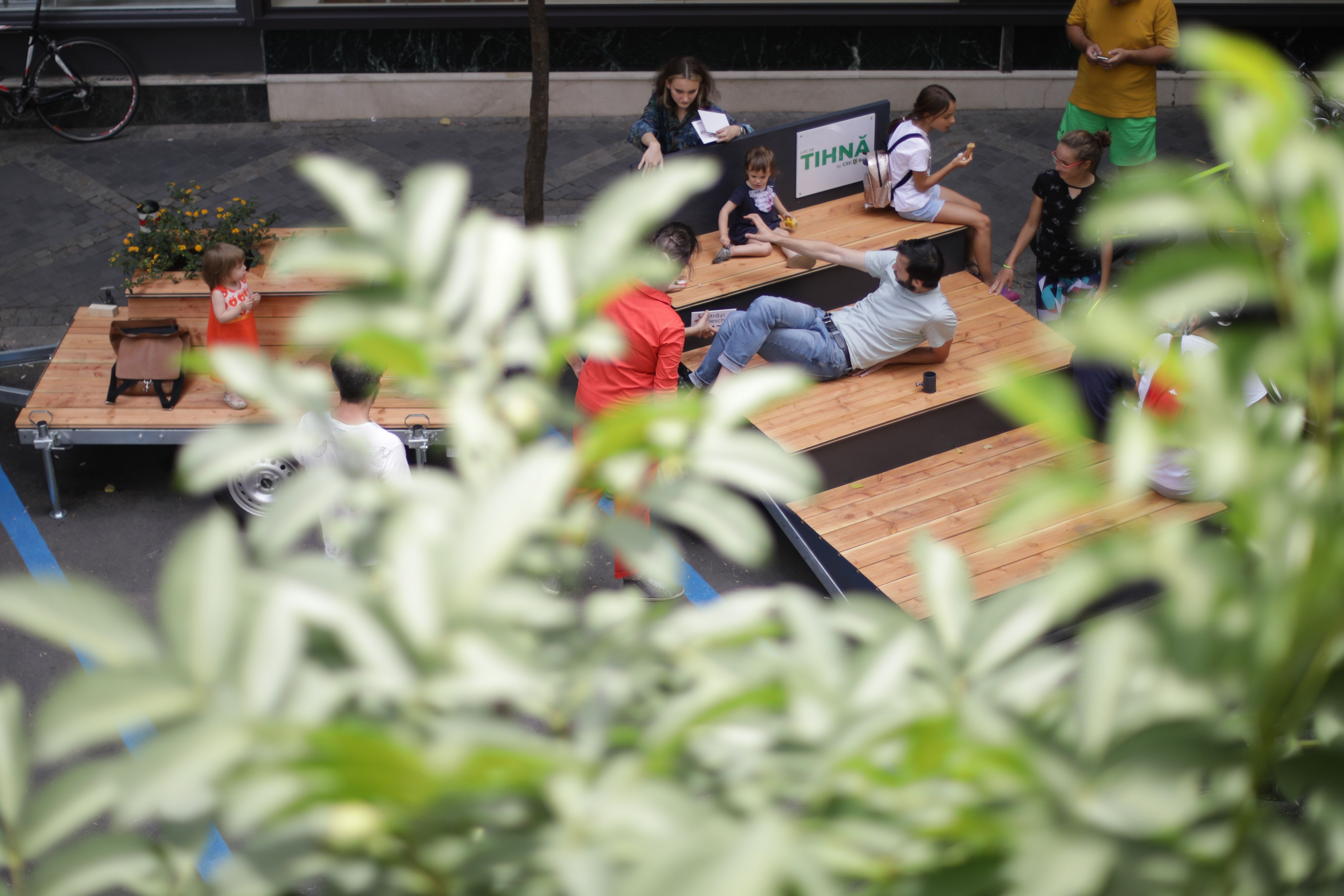 Parklets are a rather recent invetion, originated in North America. They were born out of a very simple but serious question: could a parking spot serve as anything else? One parking spot reserves 12.5 sqm of public domain, that thus gets severed from both pedestrian and traffic use whether or not a car fills it. But could it be rented for other functions, be furnished with chairs, tables, benches, potted plants, market stalls, election tents, trash bins or security cabins, elements we got so used to occupying the sidewalks? As per law, sidewalks may accommodate various obstructing objects, however, roads may only host registered vehicles.