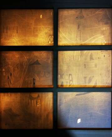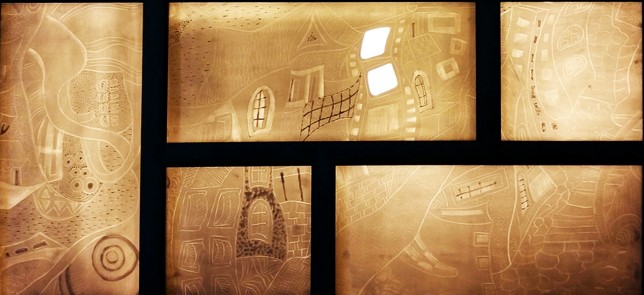 Lucrarea este compusă din trei panouri decorative cu funcţie de corp de iluminat realizate din plăci de porţelan încastrate într-un sistem de prindere din lemn, având şi instalaţia electrică ataşată. Punctul de pornire al demersului artistic îl constituie universul personal, imaginativ având ca temă „Oraşul din vis”, care constă într-o suită de desene laborioase ilustrând scene diverse ale unui repertoriu citadin aflat la marginea dintre starea de vis şi imaginaţia izvorâtă din amintiri ale copilăriei. Aceste desene au fost transpuse prin gravarea lor în porţelan dând naştere la zone cu diferite grosimi de linie care sunt puse în valoare prin transluciditatea porţelanului în lumină.