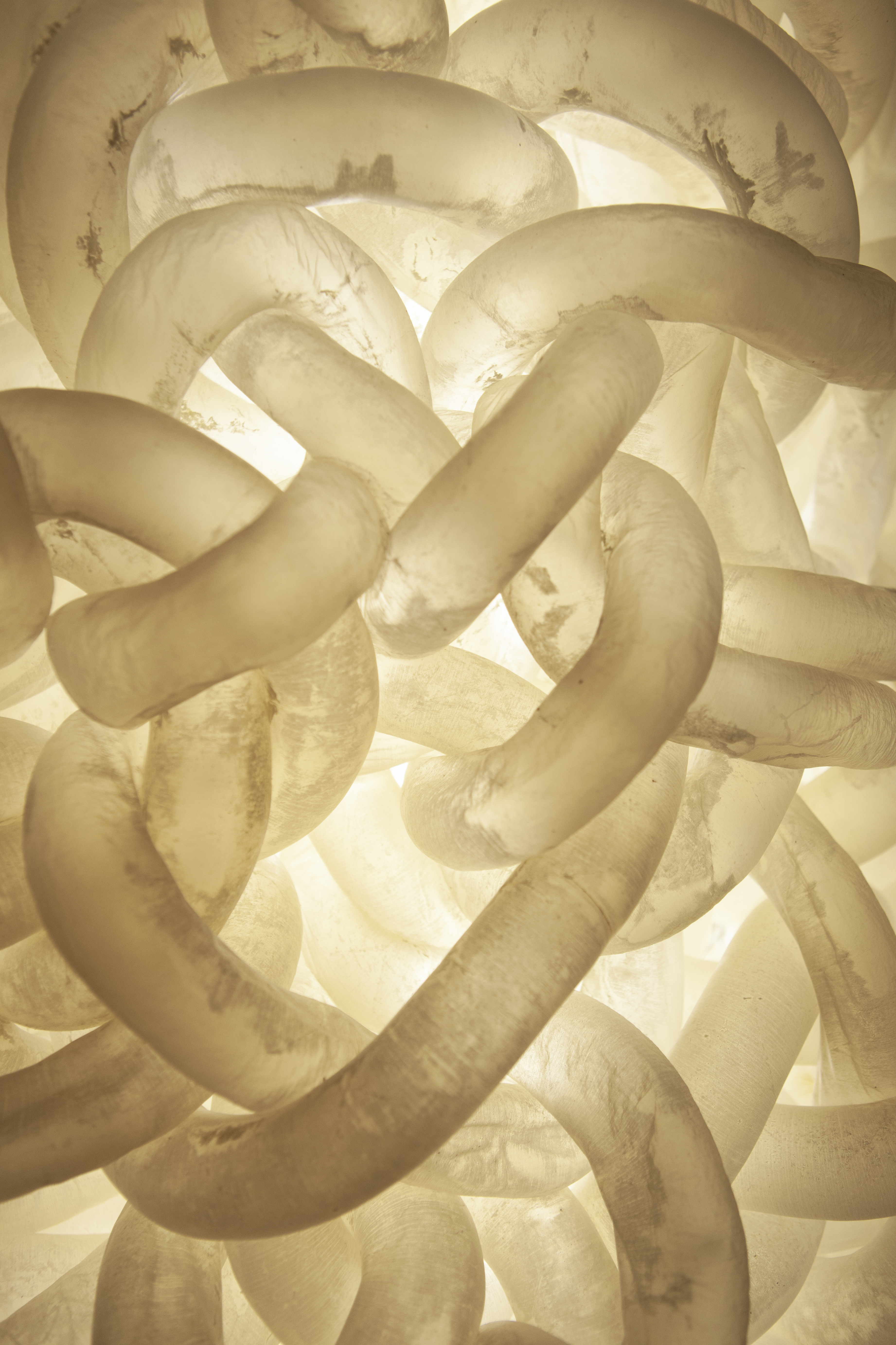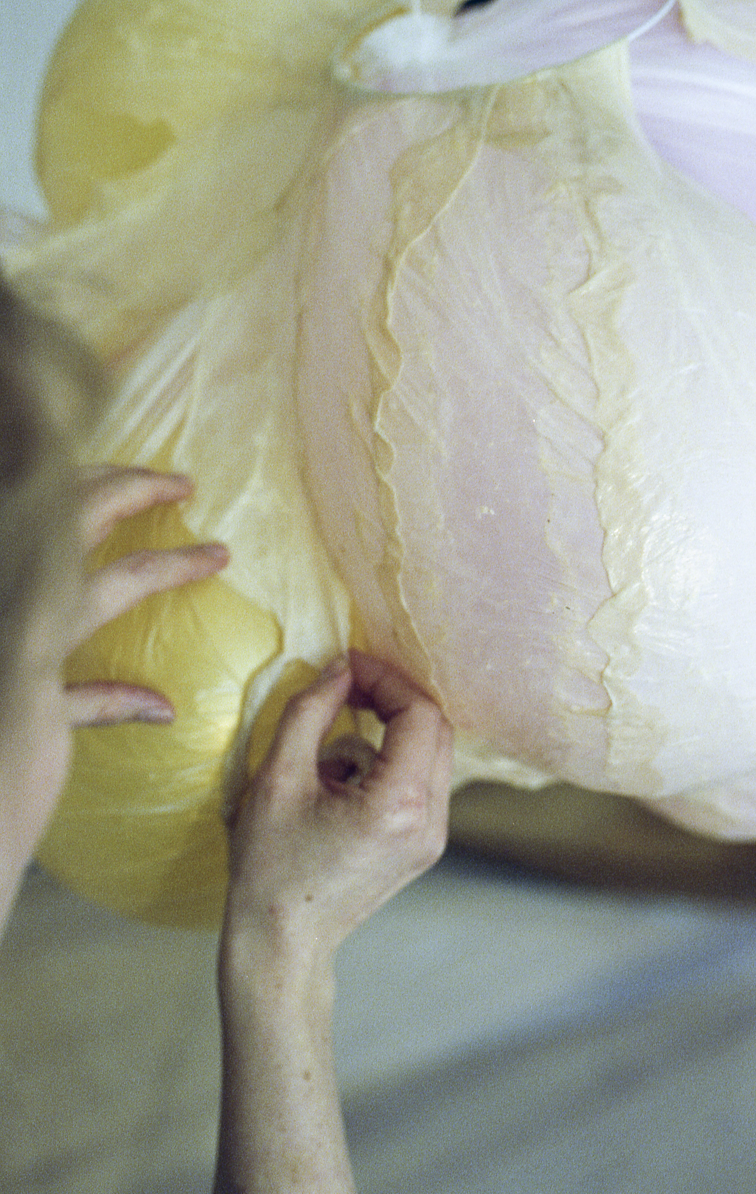 Prima mea interacțiune cu intestinele a fost în bucătăria verișorului meu, în preajma Crăciunului din 2016, când m-a rugat să-l ajut cu pregătirea acestei rețete tradiționale de cârnați. A trebuit să curăț intestinele și am devenit astfel fascinată de forma lor nedefinită și culoarea de un alb transparent. În acea după-amiază am hotărât să explorez în practica mea acest material.
