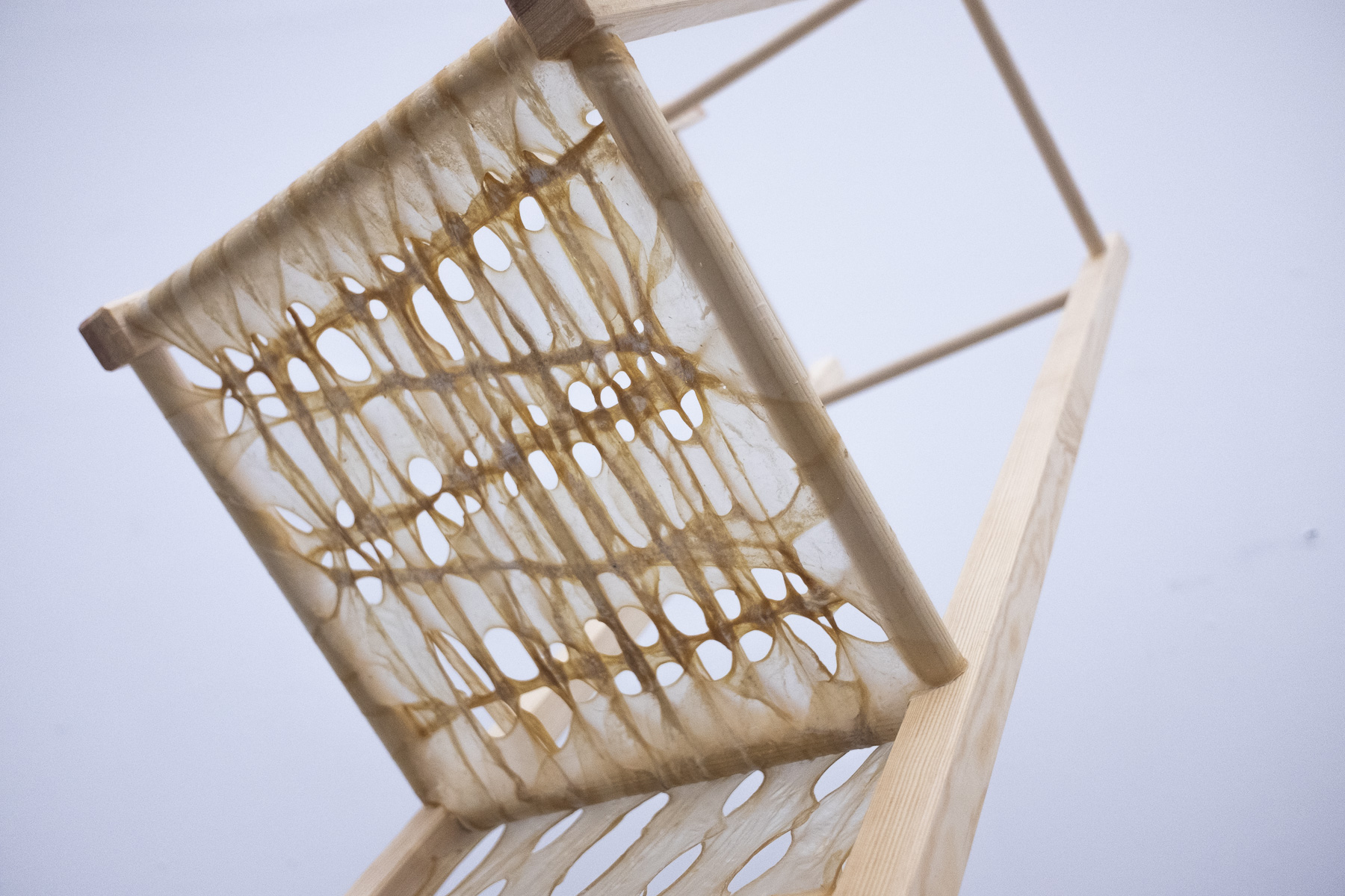 De când mi-am lansat compania, Studio KBB, m-am axat pe lucrul cu intestinele ca material principal. Am încercat o mulțime de lucruri cu acest material. Cel mai nou proiect al meu este colecția de scaune realizată în colaborare cu bunicul meu în vârstă de 93 de ani, care a fost tâmplar. Stilul lui este destul de convențional, așadar a fost mereu pasionat de scaunele mari, clasice, în stil scandinav. Am făcut împreună designul pentru șapte cadre, în care structura e făcută din lemn de pin, căreia i-am adăugat diferite detalii din intestine. Am avut o expoziție în Danemarca, unde ne-am putut prezenta munca din ultimii ani. Oportunitatea de a participa la acel workshop și de a lucra cu bunicul meu a fost o adevărată inspirație, o experiență de neprețuit și sunt foarte mândră de rezultat!