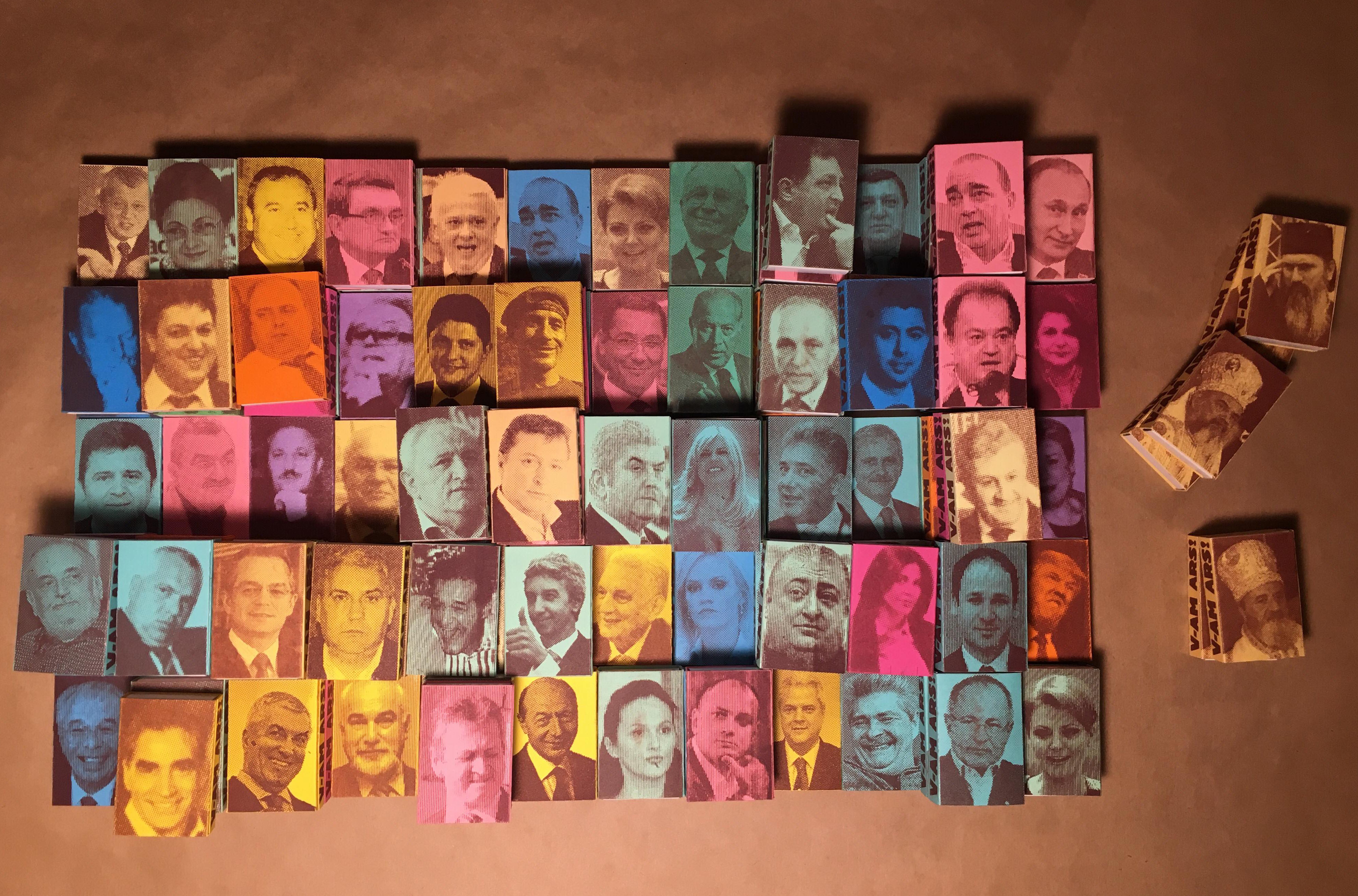 Burnt a.k.a. Gotta catch 'em all! is a colorful distraction from the frustrating political status quo in Romania. Frantically searching for change, digging deep inside empty pockets, the hopeless citizen can now reach for his pack of Burnt matchboxes and alleviate the turmoil generated by years of corruption and chaotic management. The matchbox collection currently features 60 packs, however their number is steadily increasing in direct proportion with the so called achievements of the political class. Two international names have been recently featured, alongside three heavy weights from the religious arena. The boxes are screen-printed using a special paint which enables the consumer to light up his cigarette by drawing the match across the political figure's face.