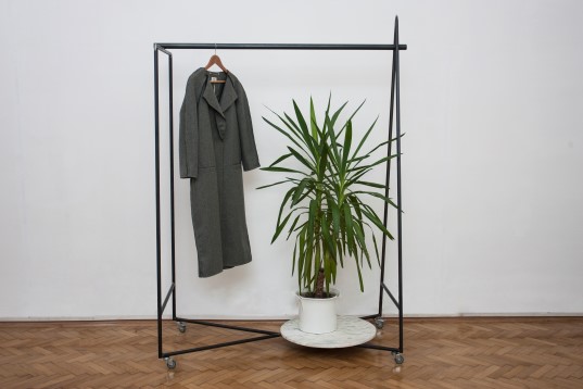 Created for Oana Lupas's fashion showroom, the clothing wracks have as a first characteristic the mobility. Being on wheels, they offer the possibility to modify the dynamic of the space where used, by changing their position through the space and combining them to another. In the creative process, this had a starting point for inspiration the three basic shapes in geometry (circle, square, triangle). They are made out of steel, with thin long lines, that help keeping a balance in the visual perception, through the way they are conceived. The marble, through its elegance, comes as a contrast with the brutality of the steel.
