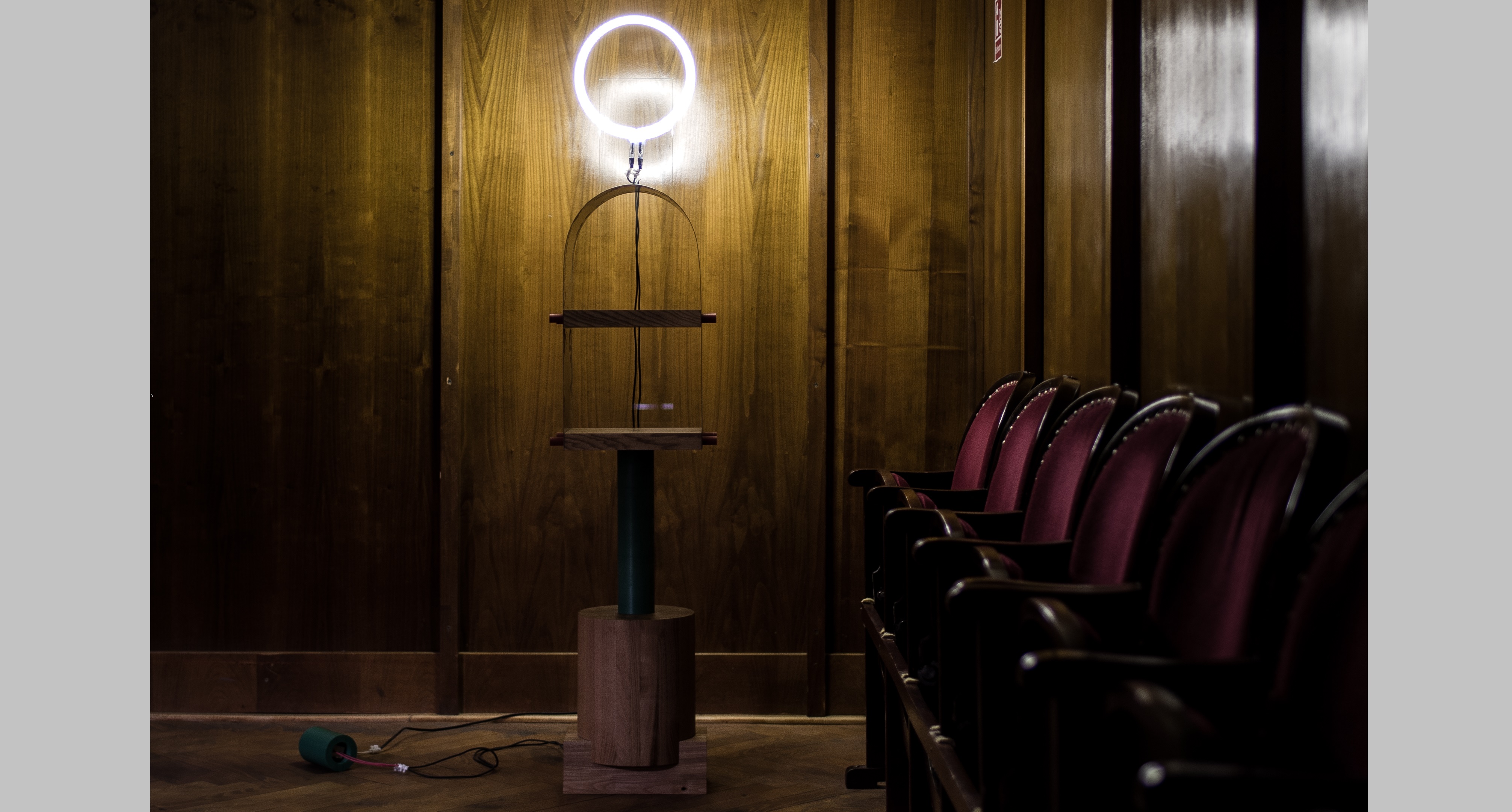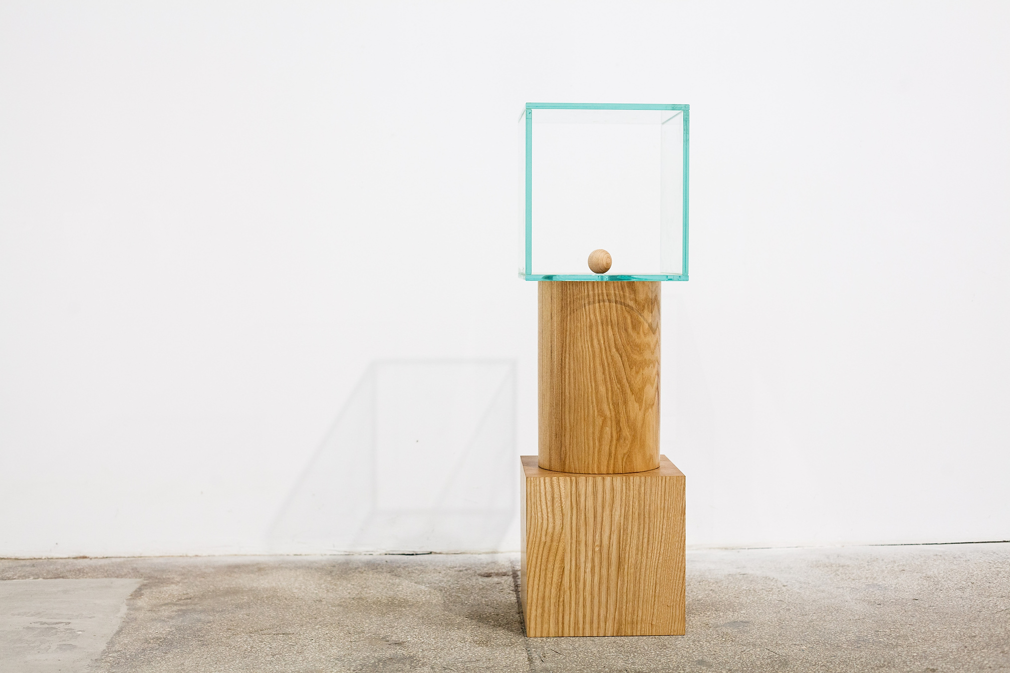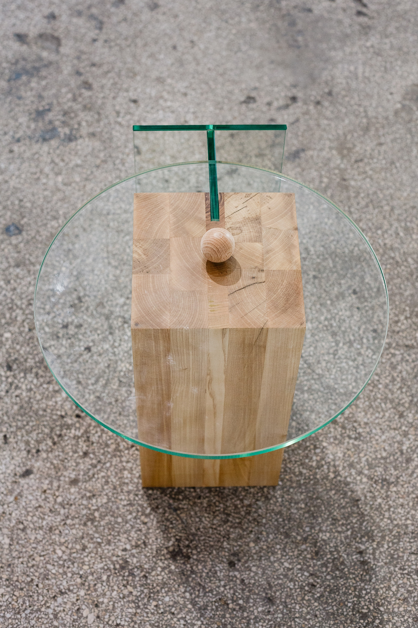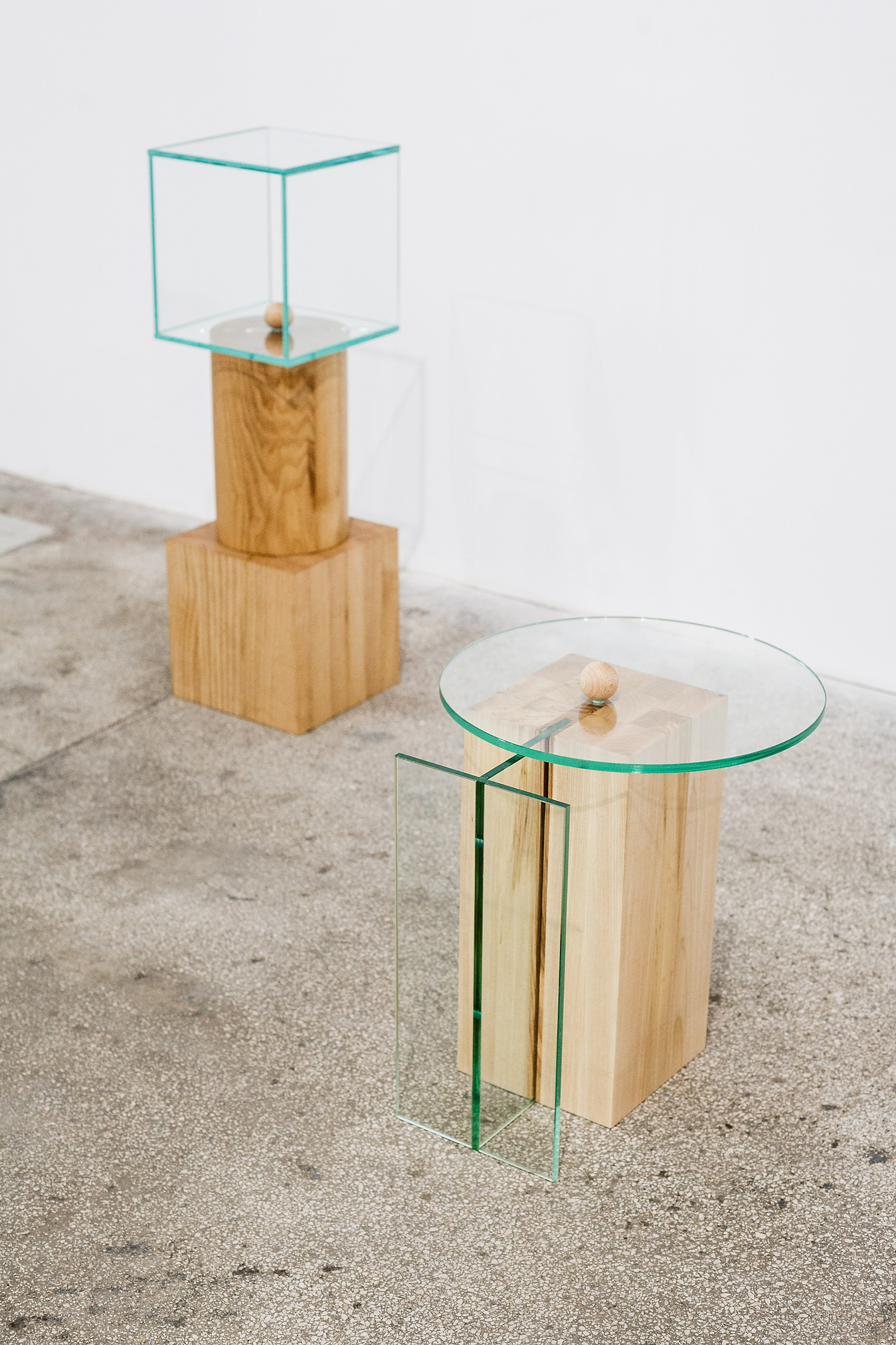Represented by the materials chosen, the duality is also found in the objects created in the "8 minutes old" series. The base element being made out of wood, offers a strong contrast both trough it's material properties as well as through it's volume, in comparison with the glass, a cold material with a considerably reduced volume.