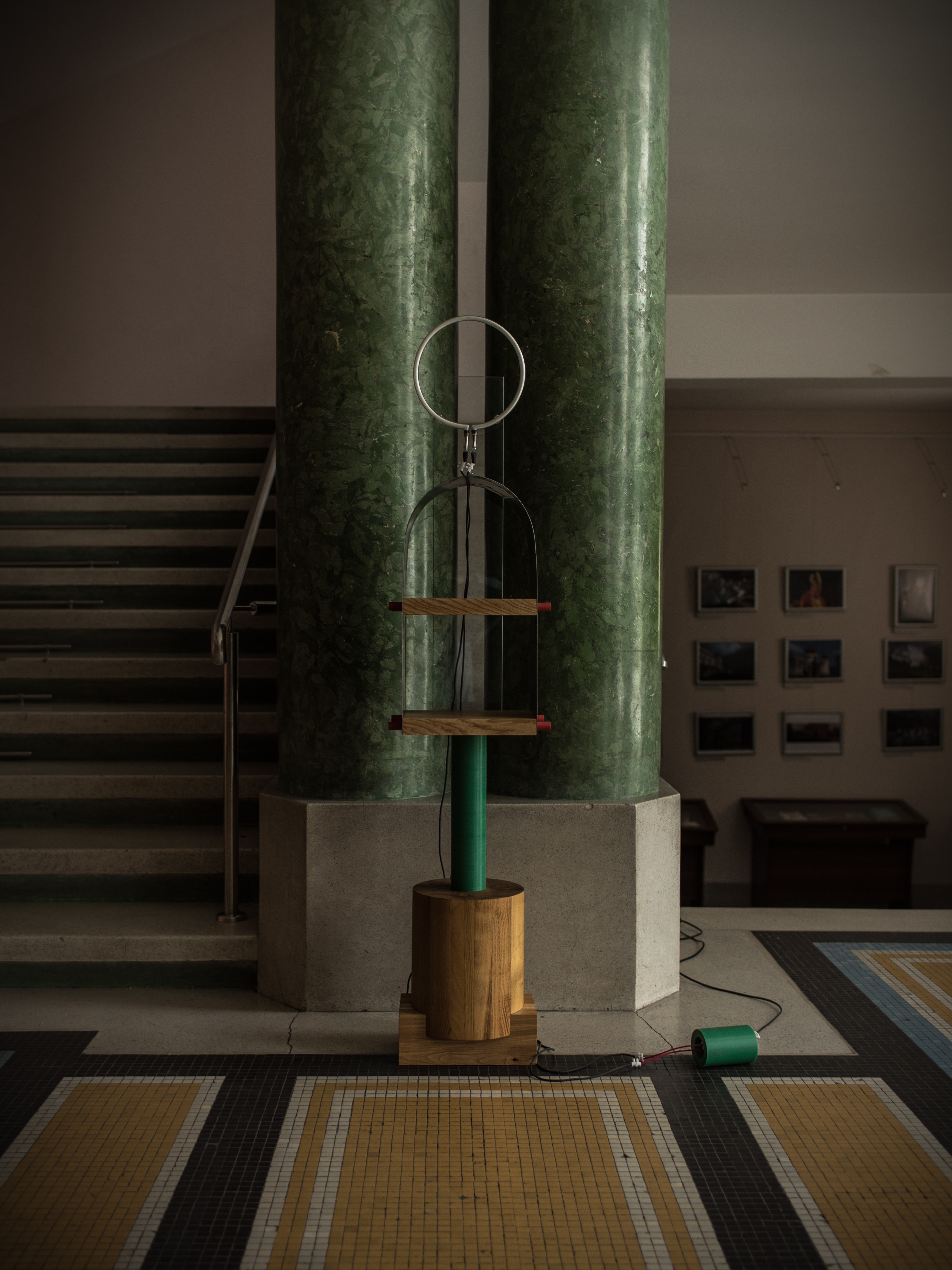 Due to it's shape, the light tube also makes reference to reflection and refraction, by changing it's direction when crossing through a transparent medium.