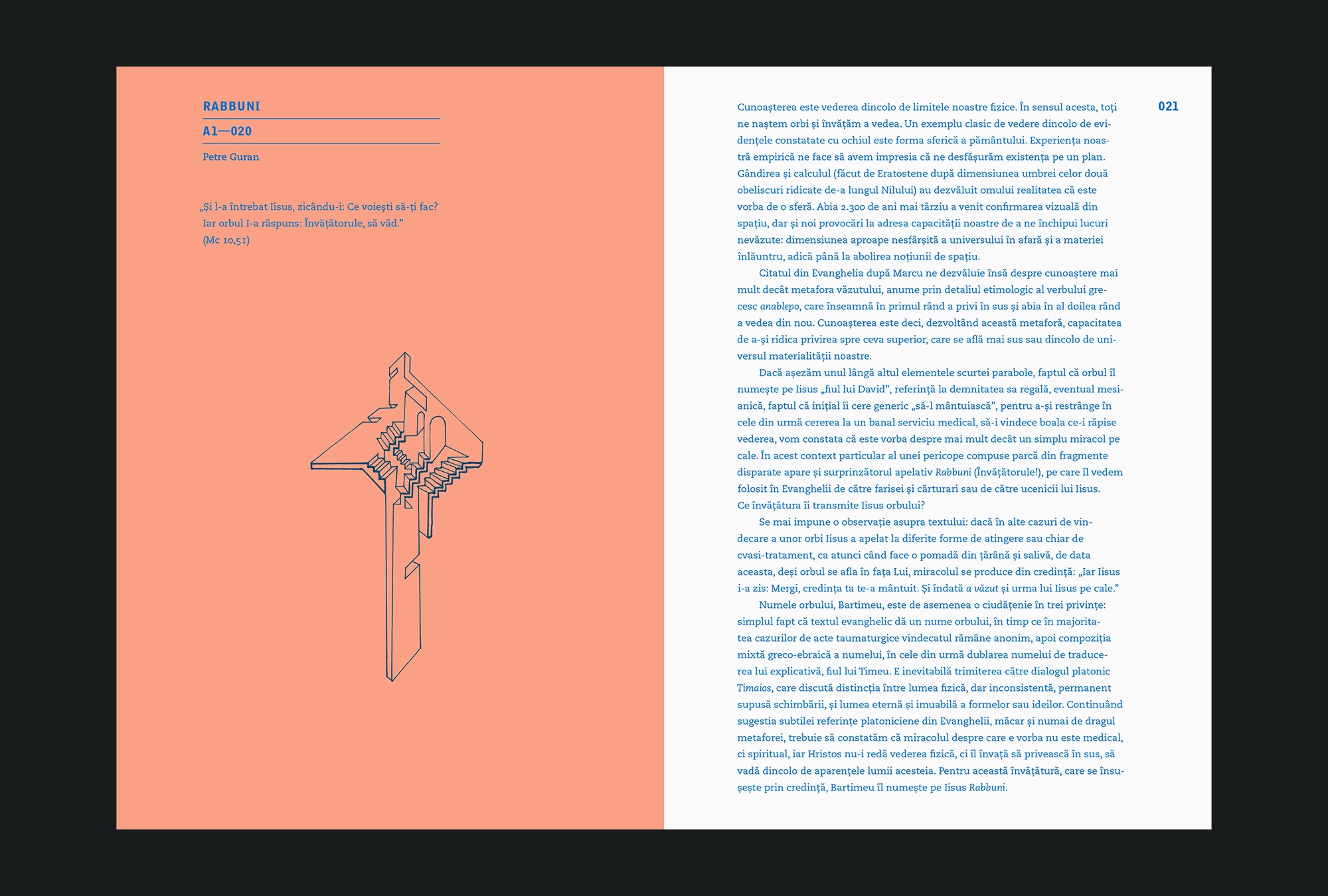 The Parkour series provides first hand access to themes, notions and seminal encounters that became the core concern of influential artists from the Romanian visual and performative field, enabling them to produce an unparalleled body of work. The series looks at a limited array of artistic projects and experiences, through the use of interview as an instrument of recording unmediated narratives. The format provides the reader with an overview upon the particular spatial and material condition of their practice, the ideas encompassed by their work, the shared histories and influences, personal beliefs and the ongoing process of conceptualizing their work.