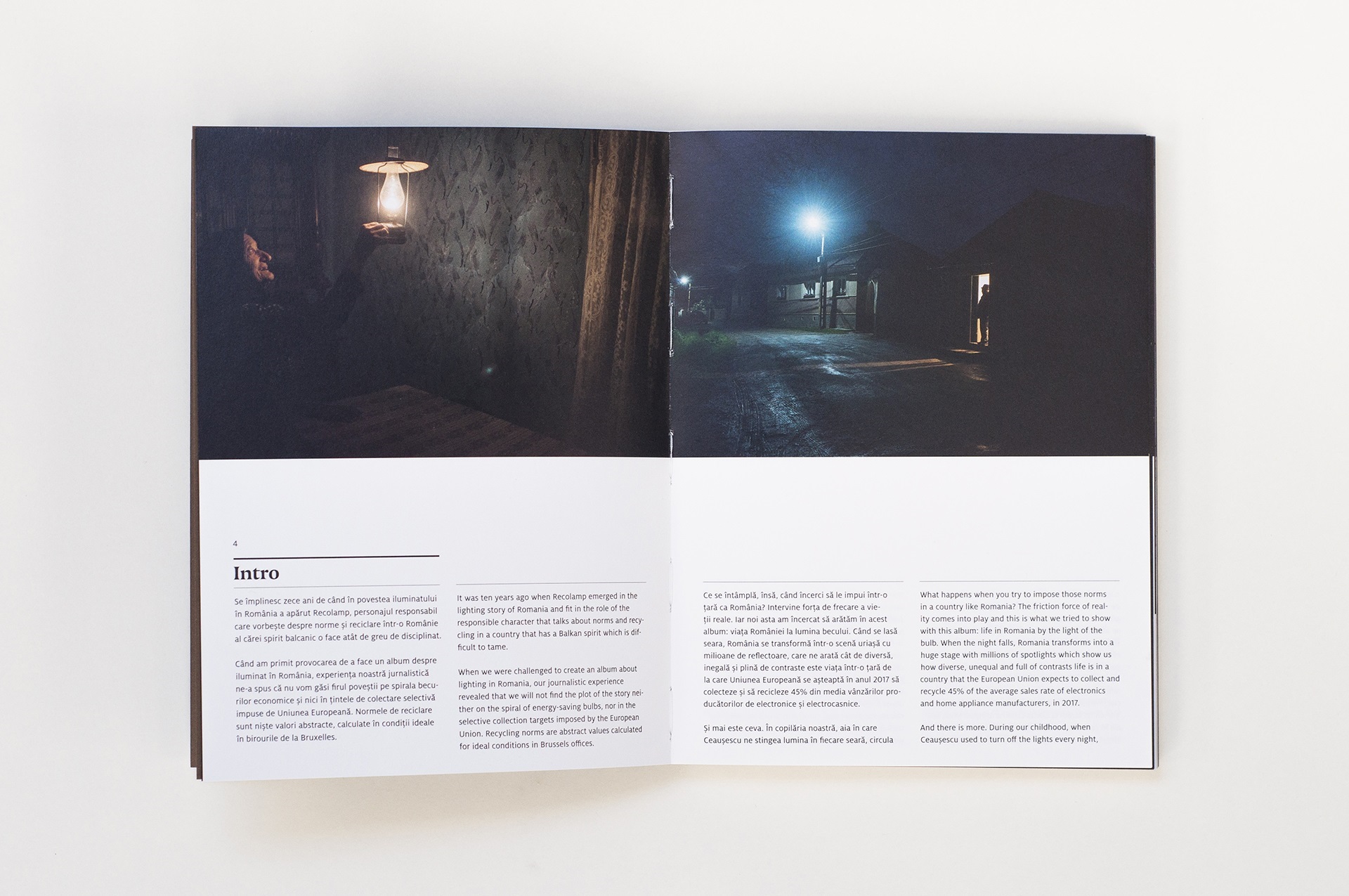 “When we were challenged to create an album about lighting in Romania, our journalistic experience revealed that we will not find the plot of the story neither on the spiral of energy saving bulbs, nor in the selective collection targets imposed by the European Union. Recycling norms are abstract values calculated for ideal conditions in Brussels offices.