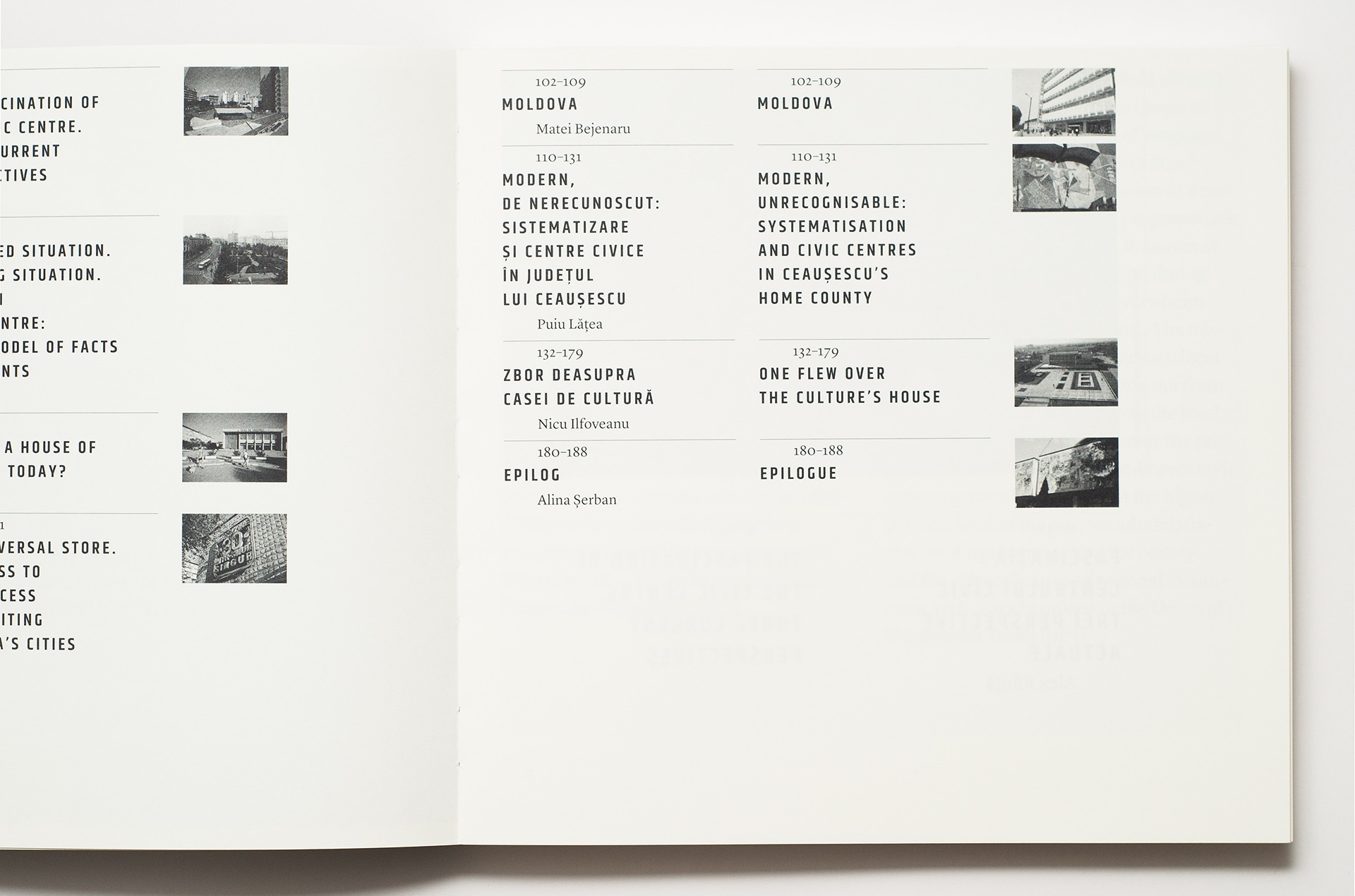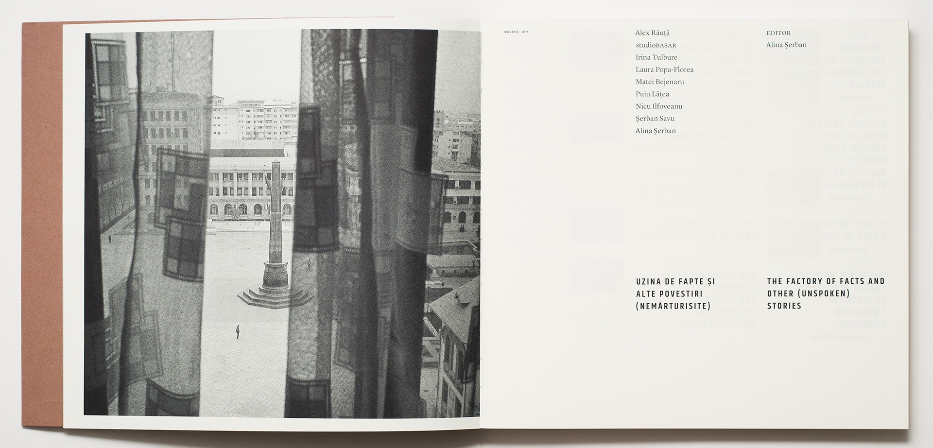 “A surprising book, which, from the poetic and well found title, The Factory of Facts and Other (Unspoken) Stories to the alert assemblage of texts/images, interrogates and puts forward a reading of the socialist public space via what constituted its new milestones: the civic centre, the house of culture, and the universal store. These three complex objects are pertinently explored from various viewpoints, each of which restores to them different facets. Densely structured texts that examine the theoretical and historical sides of the objects in question are complemented by less unexpected approaches that resituate them in their post 1989 becoming. Masterfully orchestrating all the fragments that make up the volume, Alina Șerban places them in dialogue with exceptional period photographic material. Brought together, words and images set in motion the Factory of Facts of life (imagined/dreamed/real) in the socialist city.” - Carmen Popescu, architectural historian