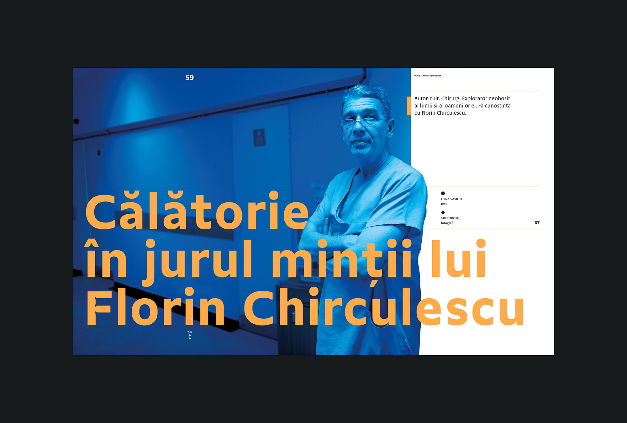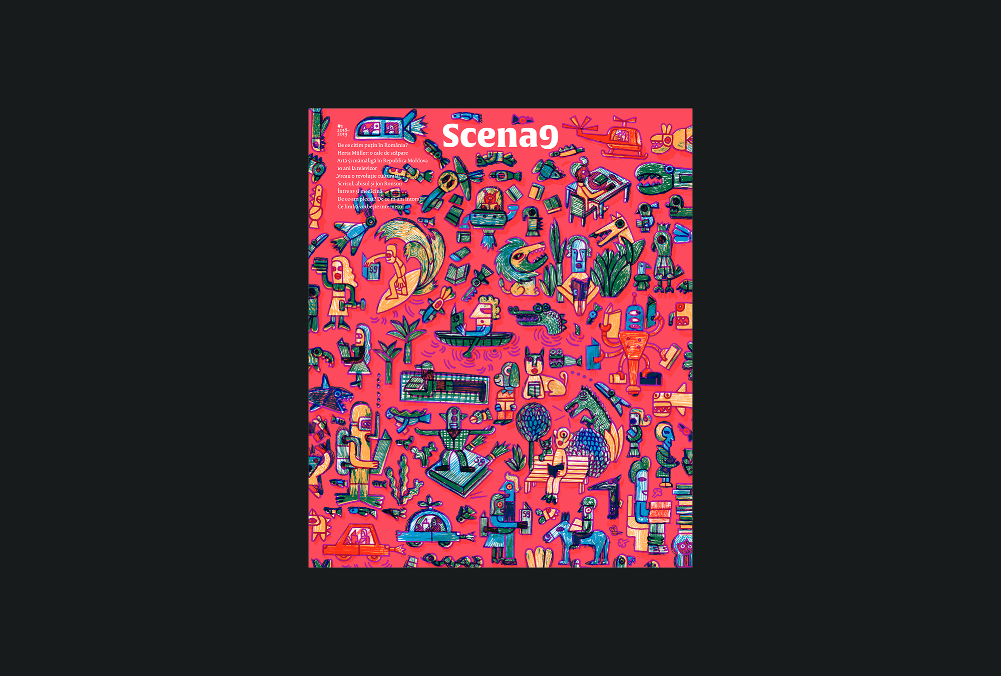 Scena9 is a magazine devoted to arts, culture and ideas. It is a yearly publication and its first issue was launched in December 2018, as a printed extension of the daily www.scena9.ro. It is the brainchild of an entire team of journalists, designers, writers, researchers, photographers and illustrators, and it is meant to create an immersive and powerful reading experience. Scena9 wishes its 200+ pages would engulf its readers and offer them a quiet, but playful space for reflection, within our daily digital hustle. The content of the magazine—exclusively published in the printed edition—explores a wide range of territories: from education, justice and health, to arts, religion, philosophy and technology. This first issue, a meeting place for some of the most relevant contemporary creators in Romania, is rather a cultural map of our country and of our world, the way we see it in 2018–2019.