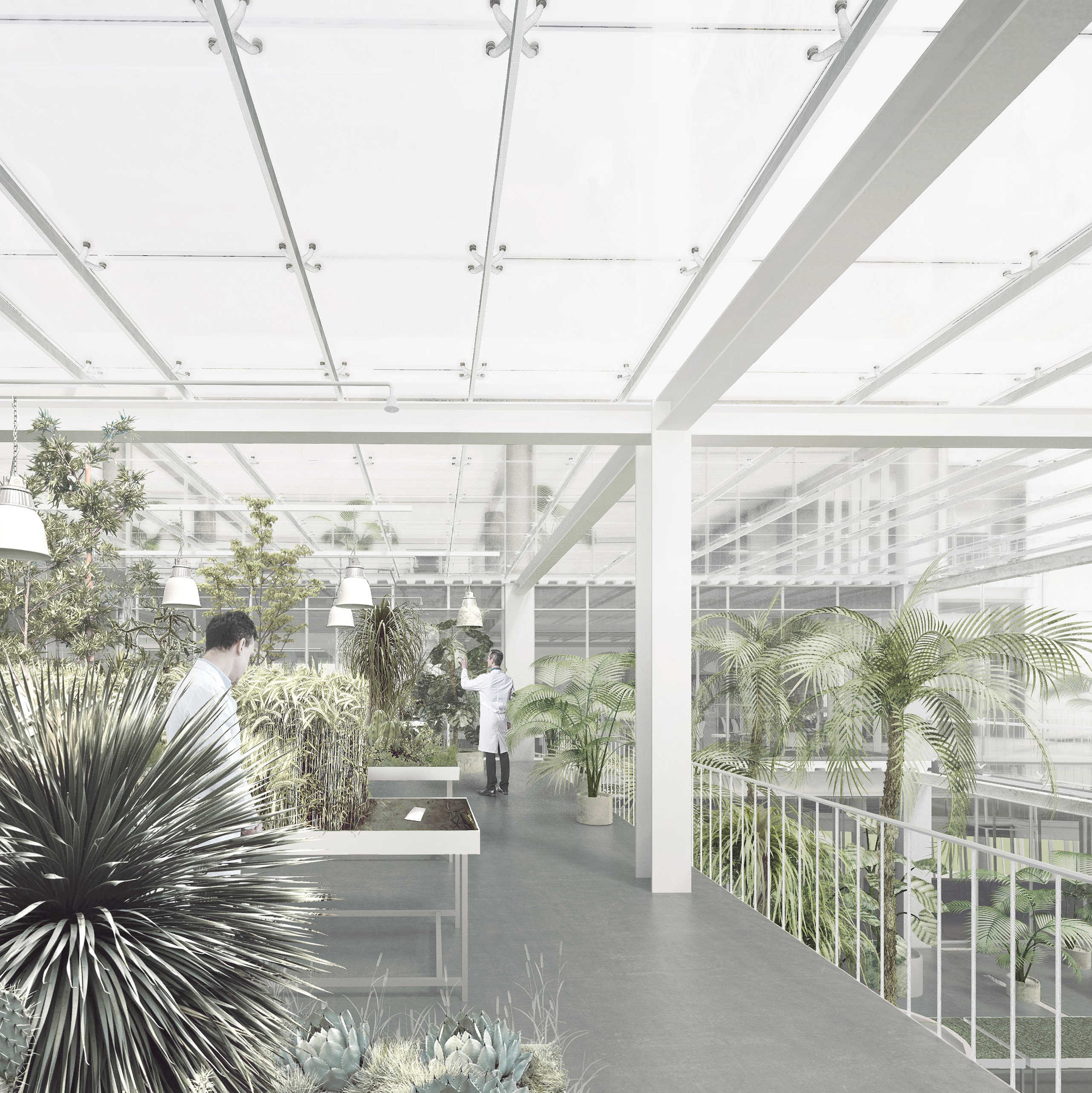 Conceptul clădirii pornește de la prezența serelor existente, actual în curs de demolare, înrădăcinate în mentalul colectiv al orașului, limbajul pur fiind utilizat pentru organizarea unui spațiu fluid, transparent și aerisit. Volumul integrează sere pe diverse niveluri, iar o serie de fragmente suspendate conferă greutate și textură intervenției, adăpostind funcțiunile standard de predare. Funcțional, programul arhitectural propune augmentarea curriculei prin auto-învățare, colaborare cu industria, inițiative studențești și activități științifice ad-hoc.