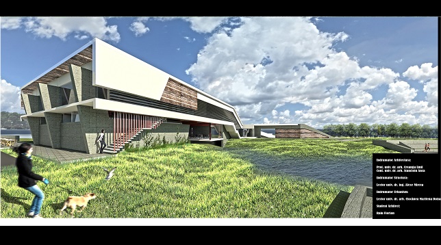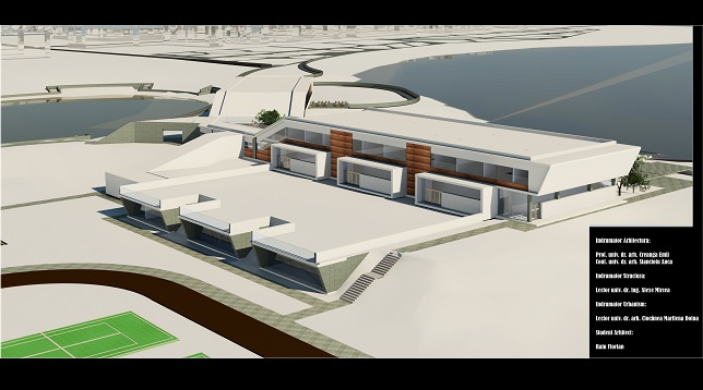 Regimul de înălțime este de S+P+1. În subsolul indiguit întâlnim zona sălilor de sport și primul simolator de canotaj din România. În continuare pe parter regăsim holul principal, cu zona expozițională, recepția pentru trama de cazare și depozitele pentru echipamente cu deschidere către Brațul Borcea.