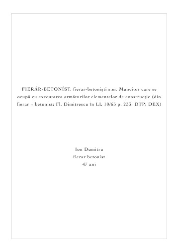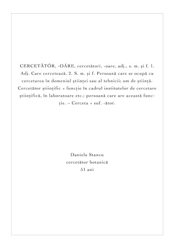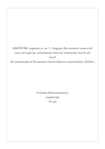 Lucrarea de licență a fost alcătuită din 12 fotografii duble de dimensiune A4 care se deschideau ca o carte și ofereau privitorului informațiile cu privire la locul de muncă al personajului din fața lor. Am realizat acest lucru deoarece în prima ipostază, când doar portretul simplu, alb/nergu era vizibil acesta nu lăsa loc de interpretare asupra personajului din punct de vedere al meseriei practicate. Lucrarea de disertație se continuă pe aceeași idee, dar expuse altfel.