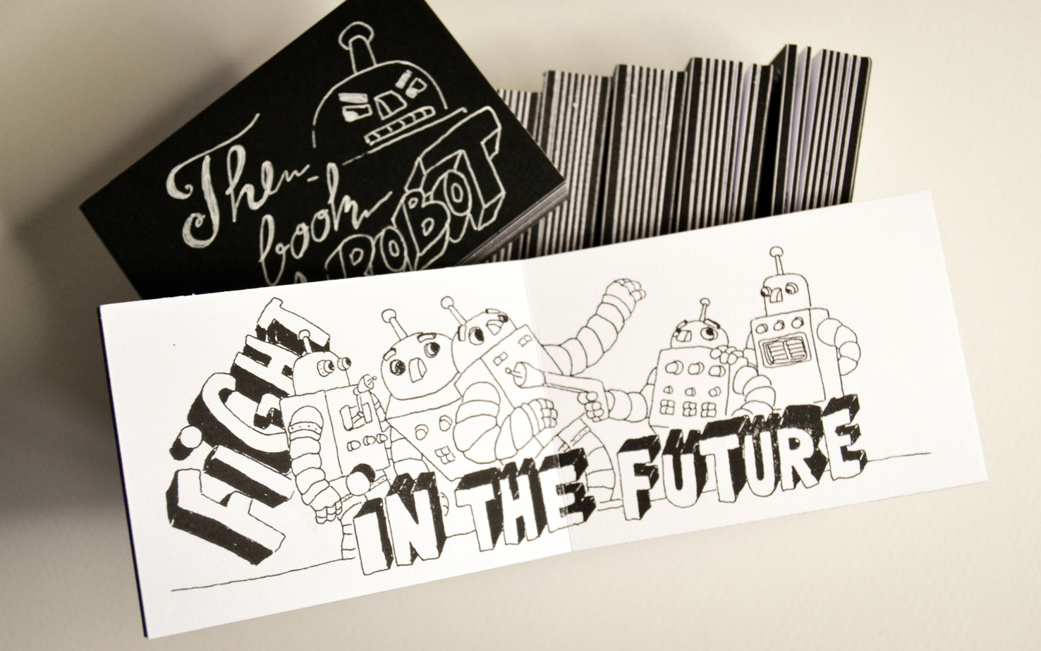 The book of Robot is the first volume from the collection “Anthology on seven spreads”, in a limited edition of 20 copies. The book is multiplied by digital print, except for the cover which is drawn separately for each copy of the twenty. Each copy is signed and numbered.